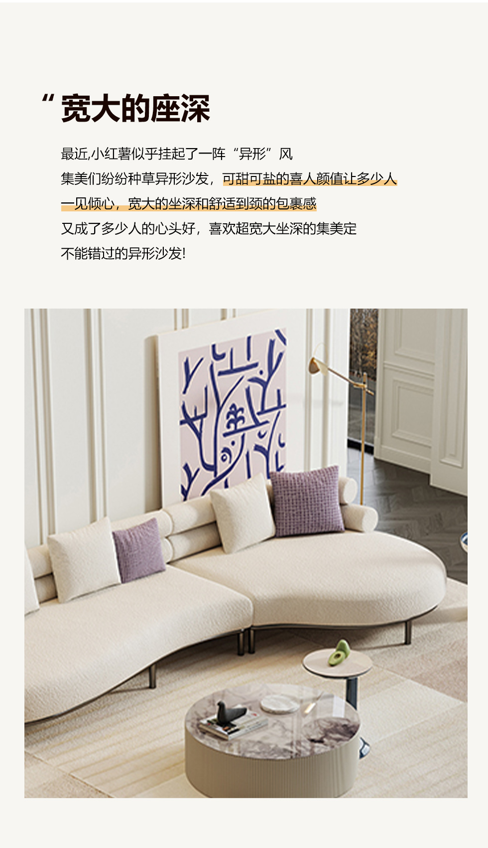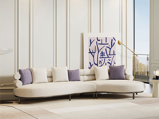 云端 奶油风 羊羔绒+海绵+公仔绵+实木框架+实木脚 1+右贵妃 转角3.14米沙发