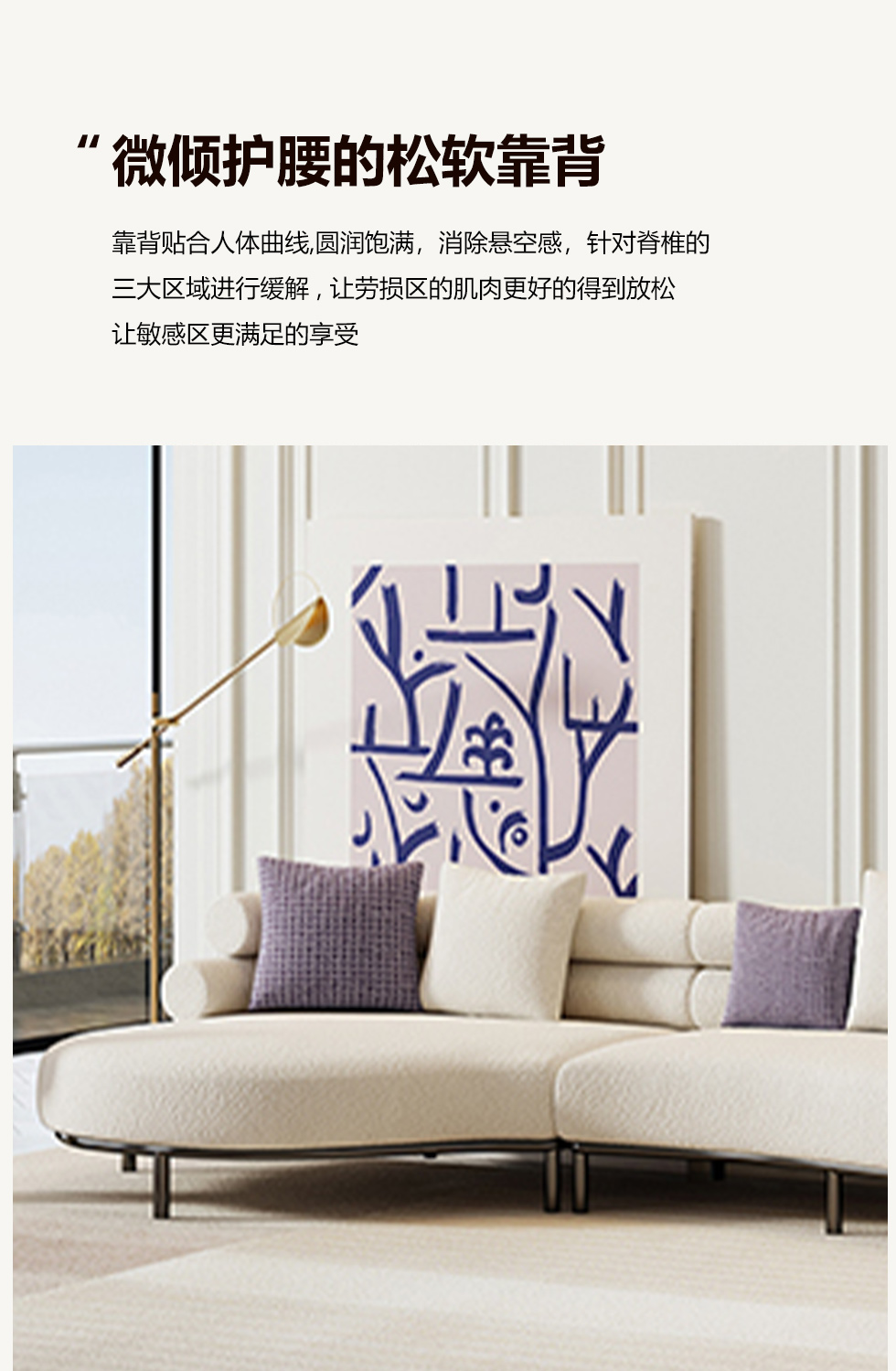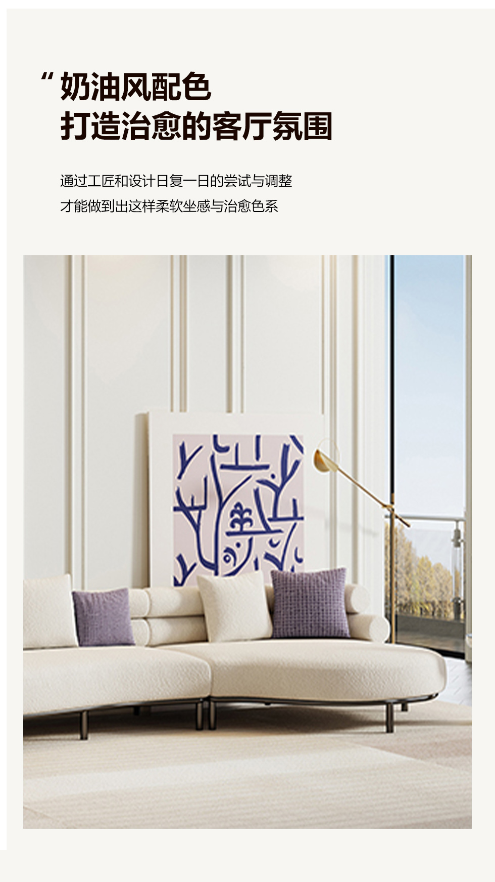 A系优选 奶油风 磨砂布+桉木+高密度回弹海绵+羽绒+公仔绵+黑色脚 四人位 网红云朵 2.8米沙发¥6058