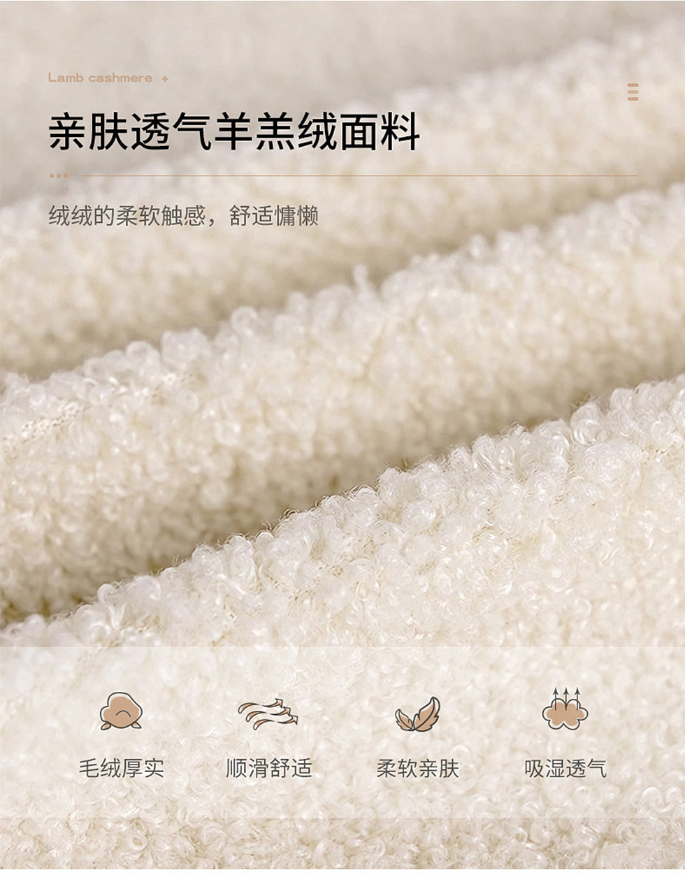 鹿屿 奶油风 羊羔绒H008- 系列(全)+实木框架+高回弹海绵+羊羔绒+五金脚 布艺沙发 三人位2.3米沙发 (含抱枕)