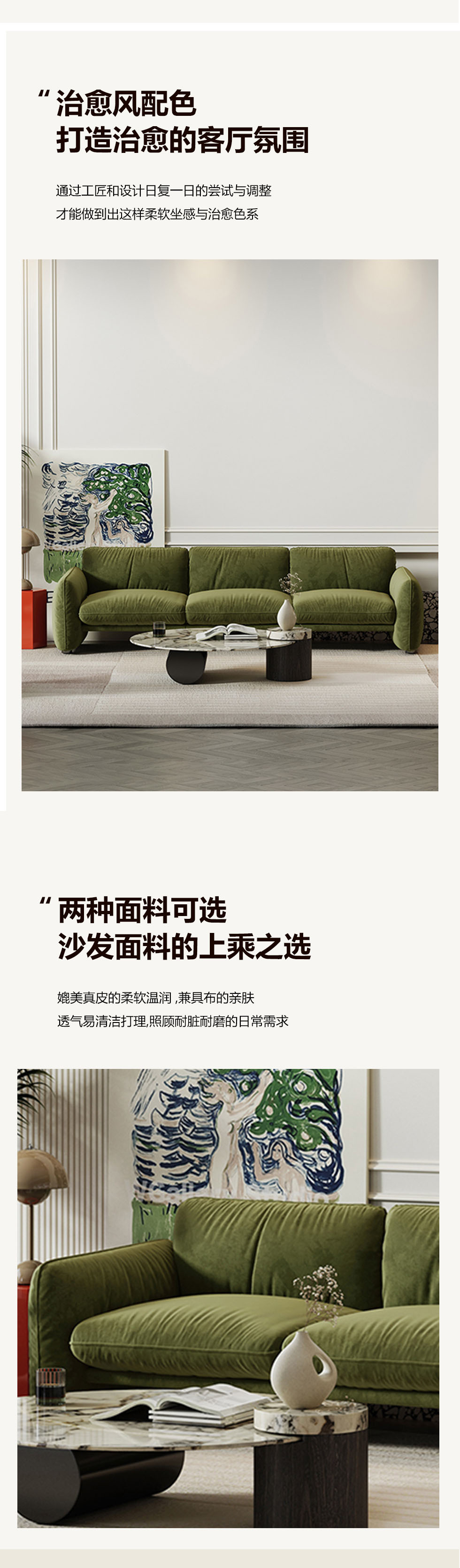 Minttu明途 极简 实木框架+高回弹海绵+扪真皮+仿皮+羊羔绒+五金脚 皮艺沙发 四人沙发双扶手2.82米沙发(含抱枕)