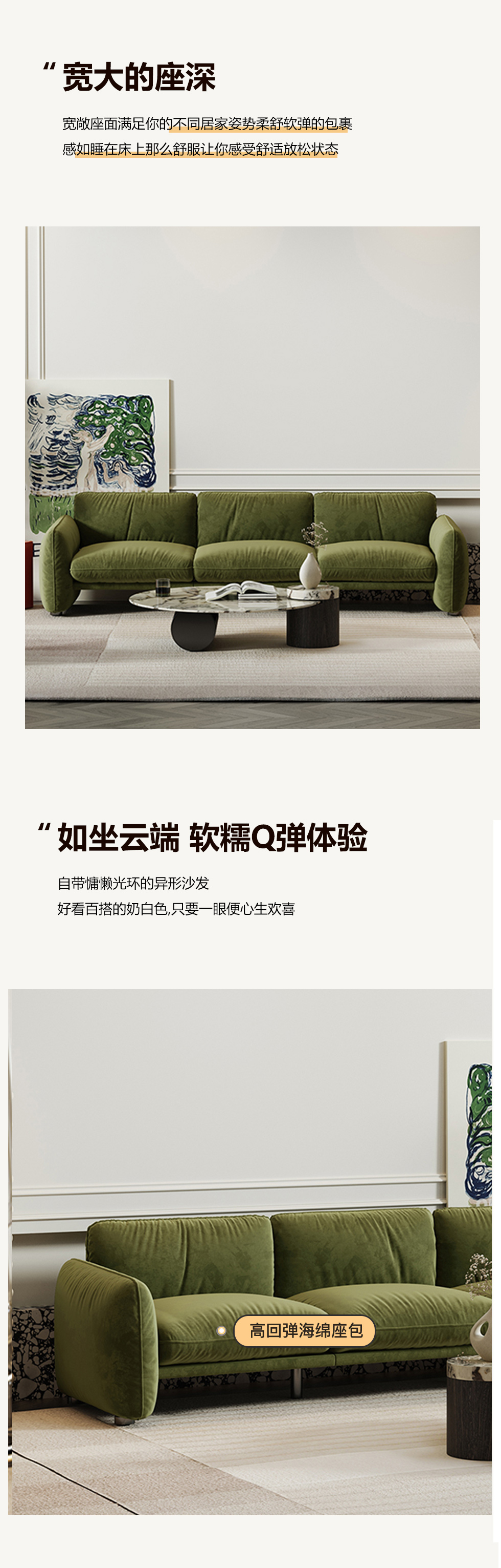 A系优选 奶油风 高密度海绵+全实木框架 科技布面料 抱枕羽绒 图片色 四人位 网红钢琴键 2.7米沙发¥8155