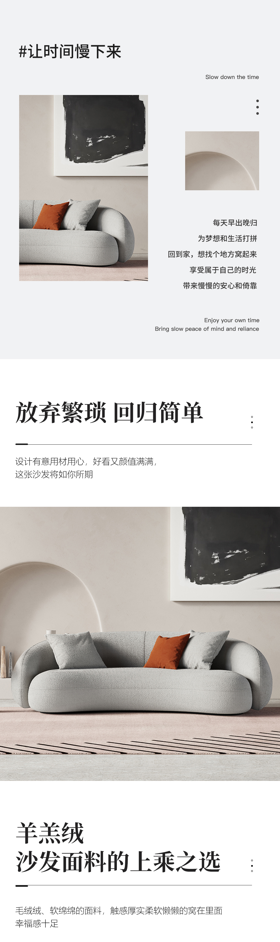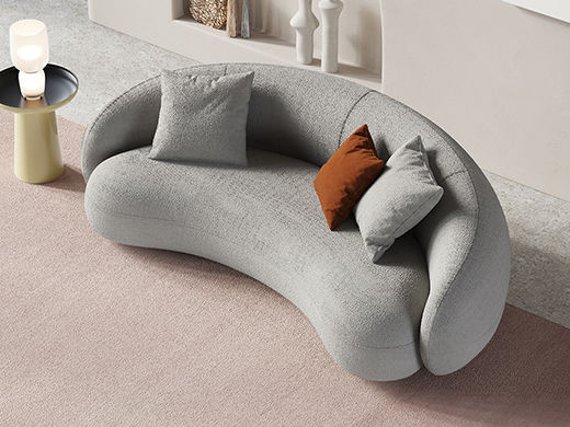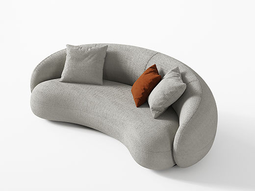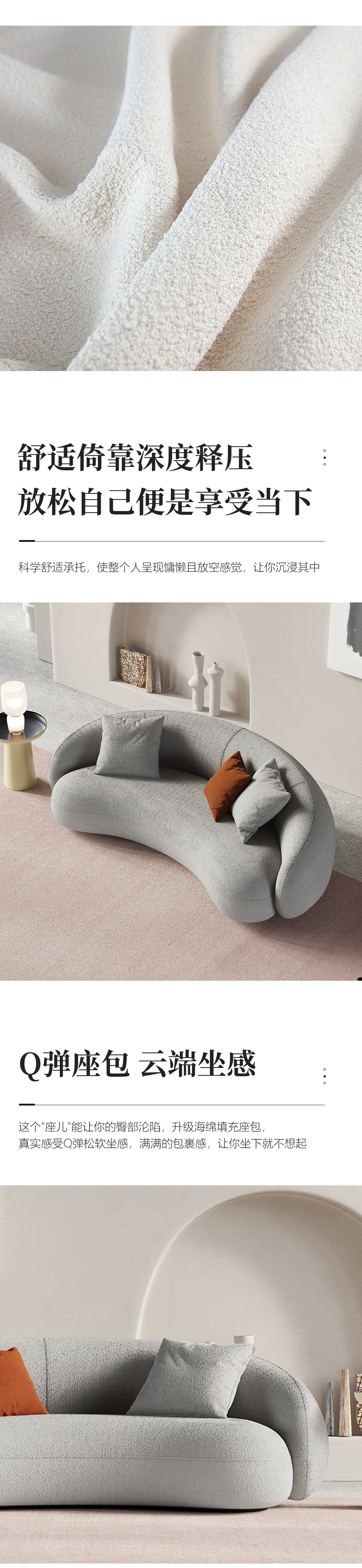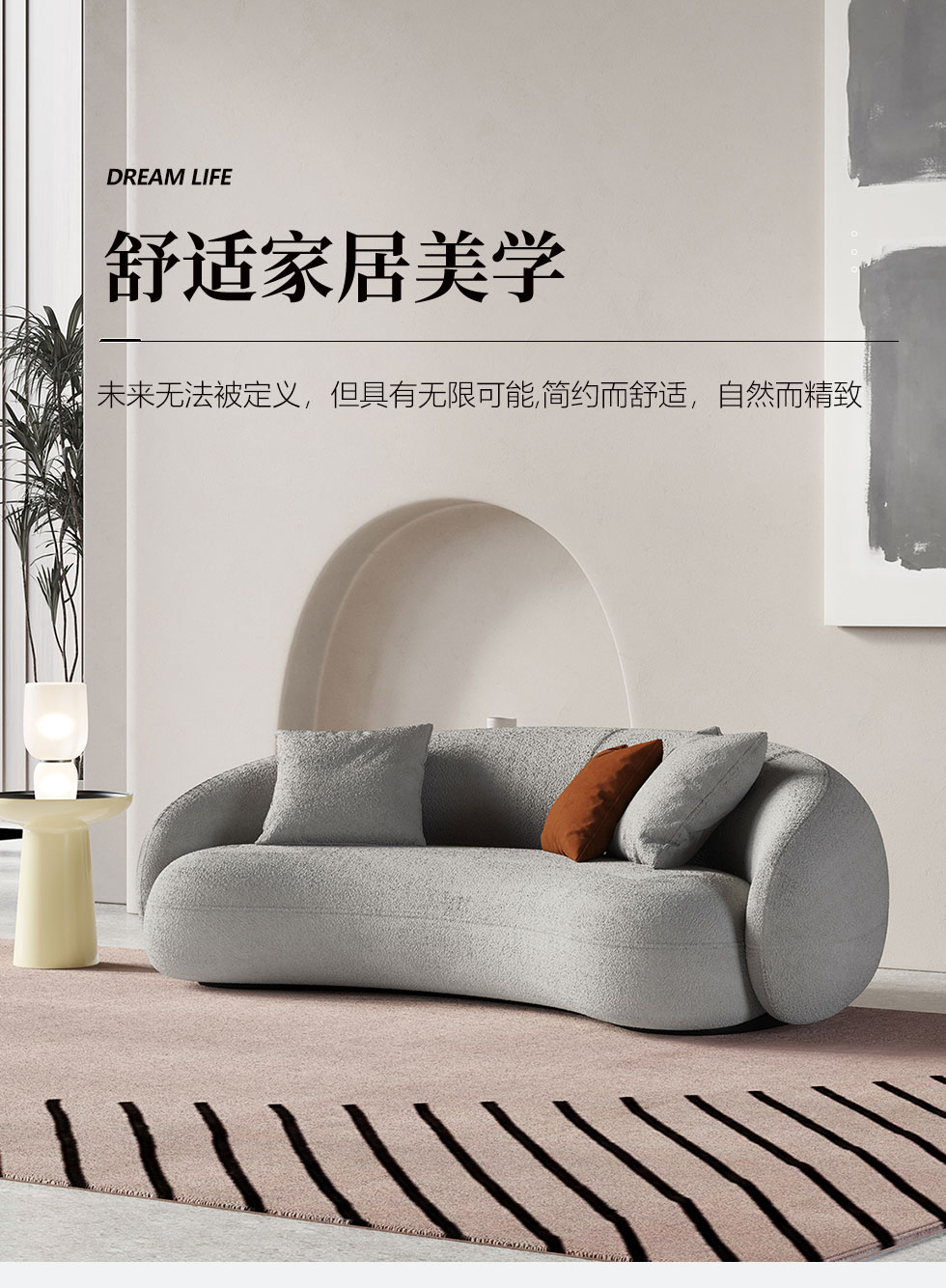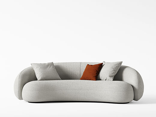 Minttu明途 极简 实木框架+高回弹海绵+羊羔绒+实木脚 网红豆荚直排三人位布艺弧形2.2米沙发(含抱枕)