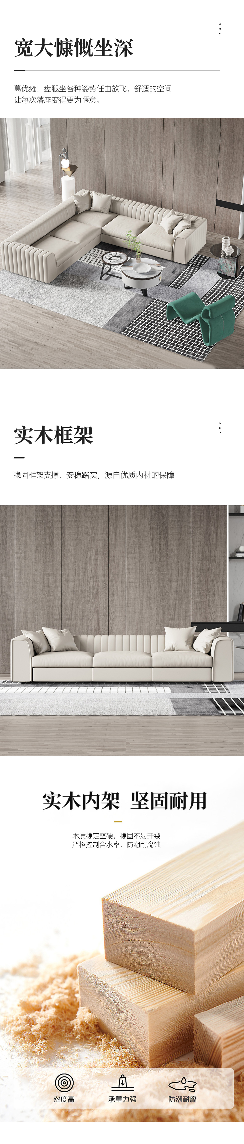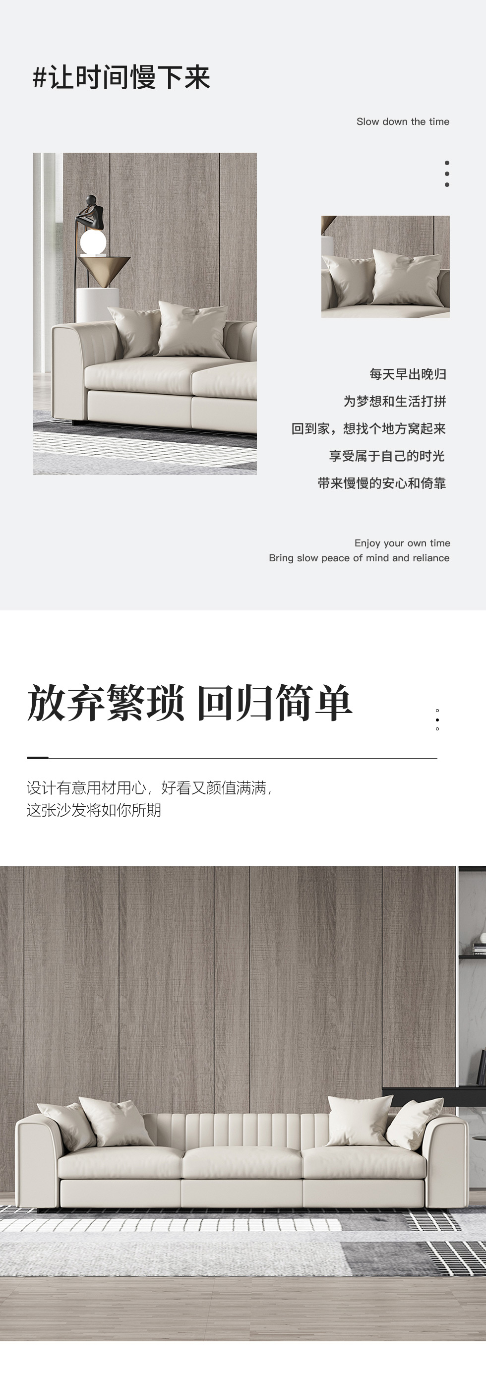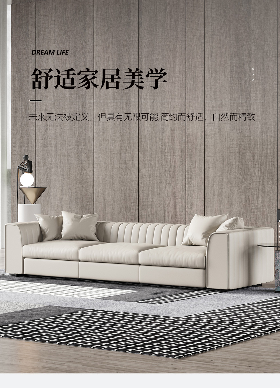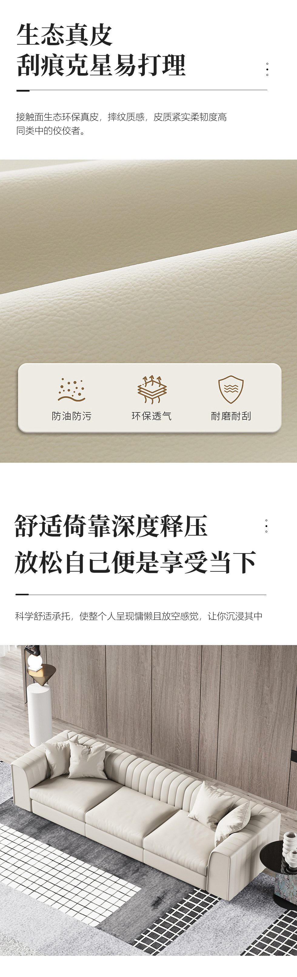 Minttu明途 极简 落叶松木+多层实木板+接触面头层真皮+仿真皮+电镀不锈钢五金脚 网红 香奈儿 四人位 2.8米沙发¥7567