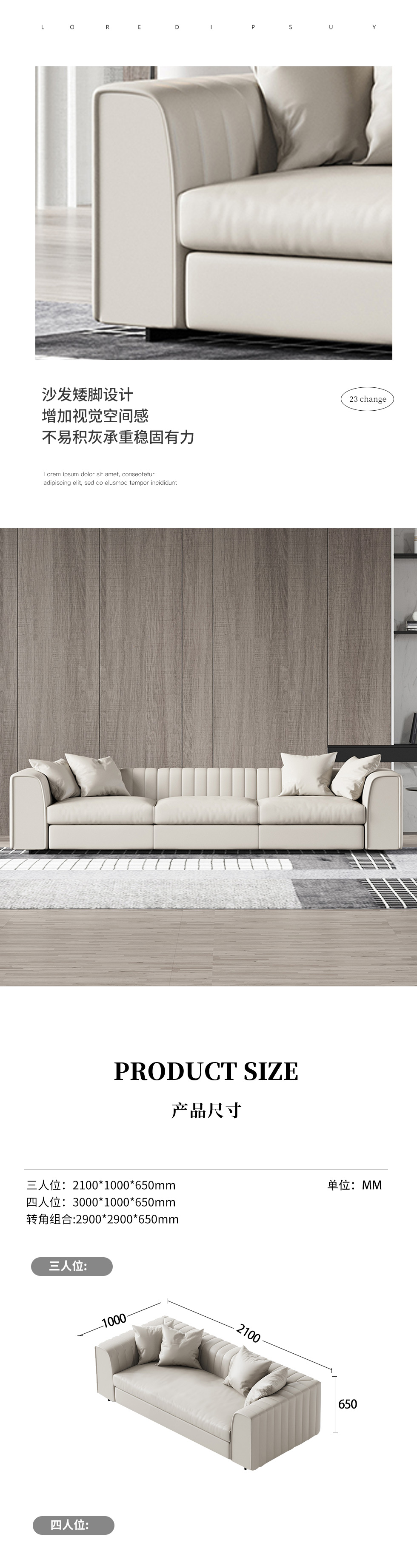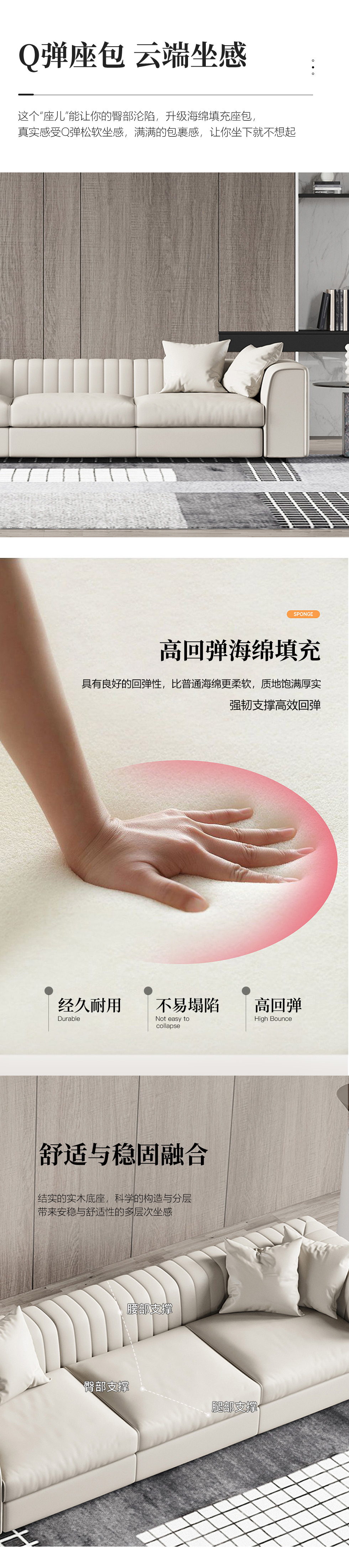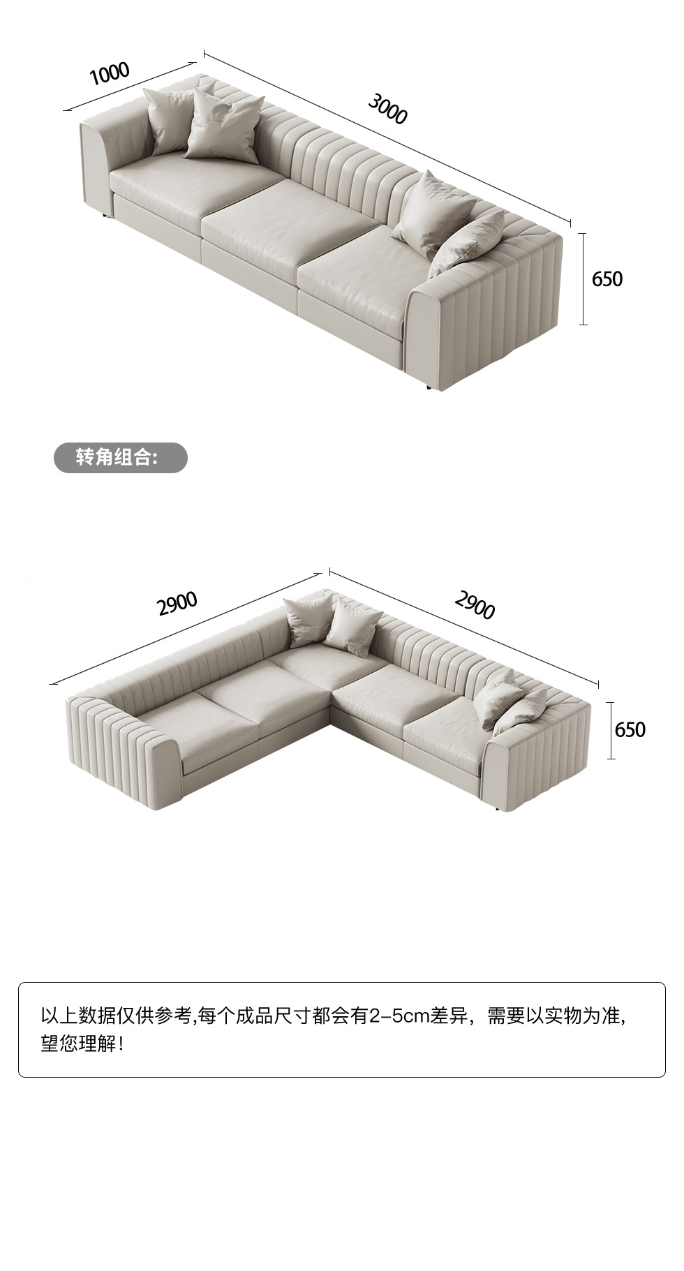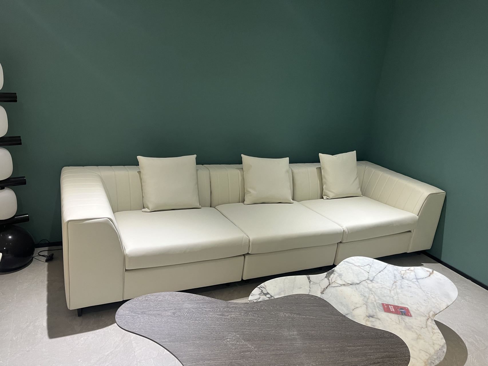 Minttu明途 极简 落叶松木+多层实木板+接触面头层真皮+仿真皮+电镀不锈钢五金脚 网红 香奈儿 四人位 2.8米沙发¥7567