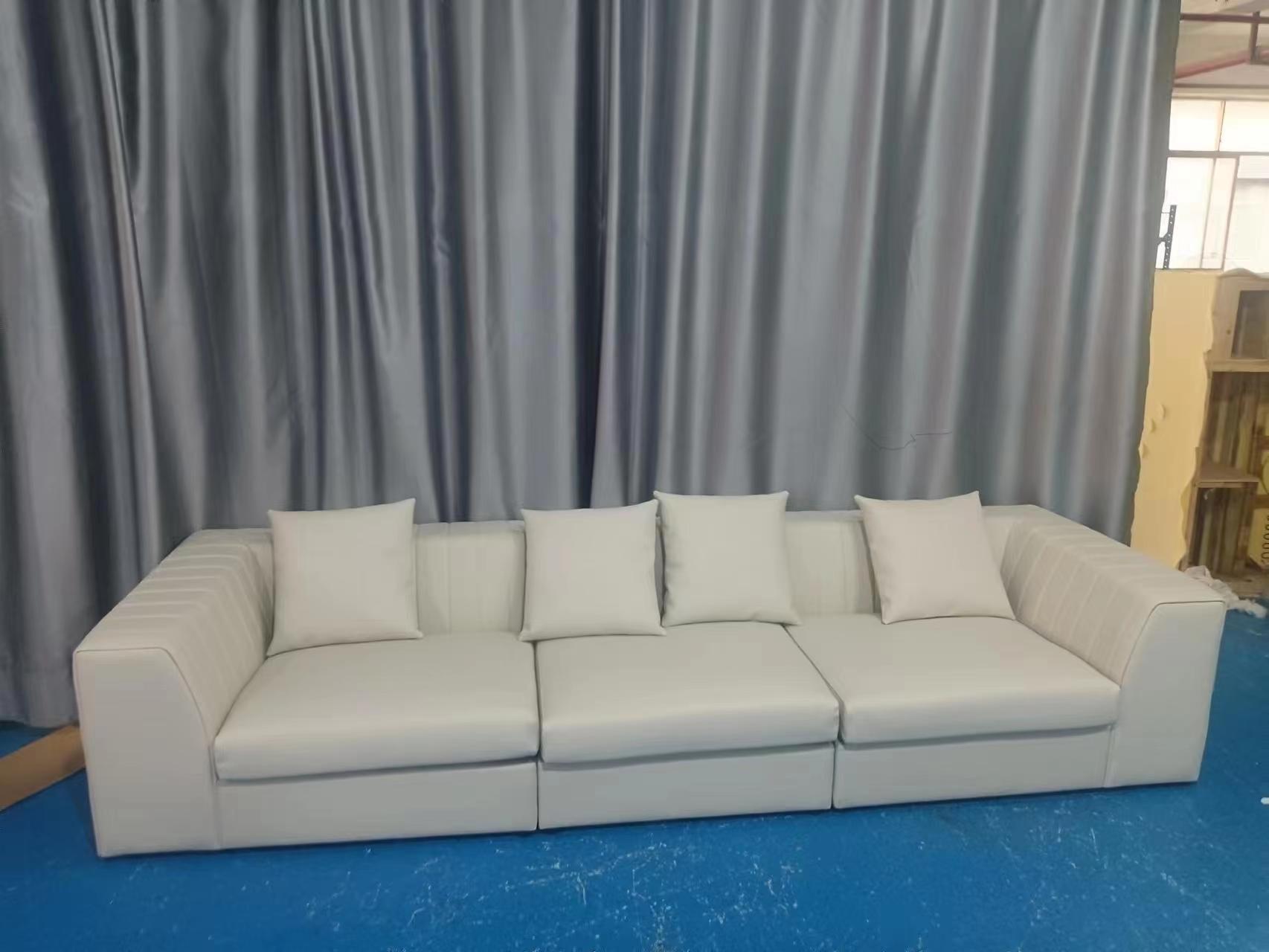 Minttu明途 极简 实木框架+高回弹海绵+生态真皮+仿皮+金属脚 皮艺沙发 四人沙发双扶手3米沙发(含抱枕) |