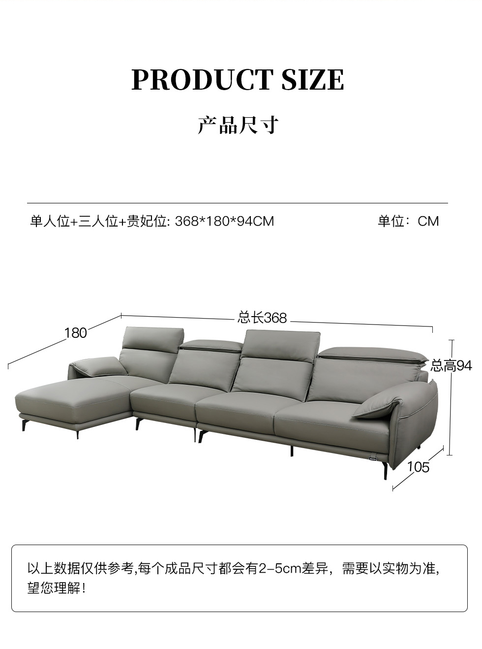 e家优选 现代简约 接触面头层黄牛皮 按木松木组合内框架 蛇簧+绷带 高回弹海棉座包靠包 扶手羽绒填充 头枕6档可以调节功能 二人位+四人位 皮艺组合功能沙发¥11599