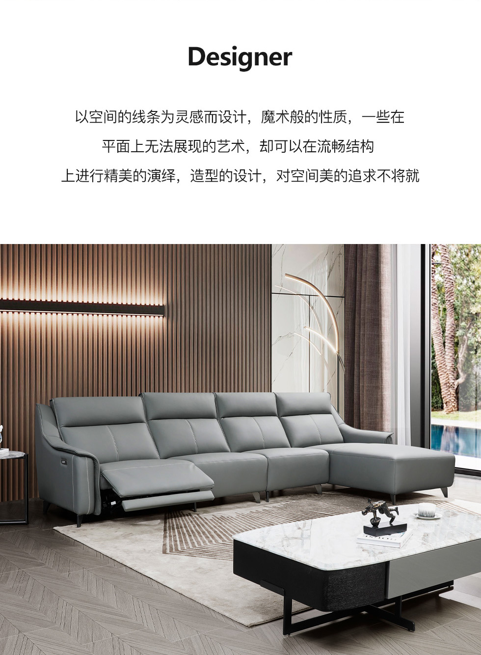 E家优选 现代简约 接触面进口头层牛皮+进口 落叶松+高 回弹海绵+锐迈电机 三电动功能2.75米沙发床