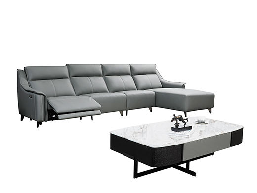 e家优选 现代简约 接触面头层黄牛皮 按木松木组合内框架 蛇簧+带 高回弹海棉座包 靠背3A公仔Q弹棉填充 功能架迈博五金 (1+4)组合皮艺功能沙发¥10786