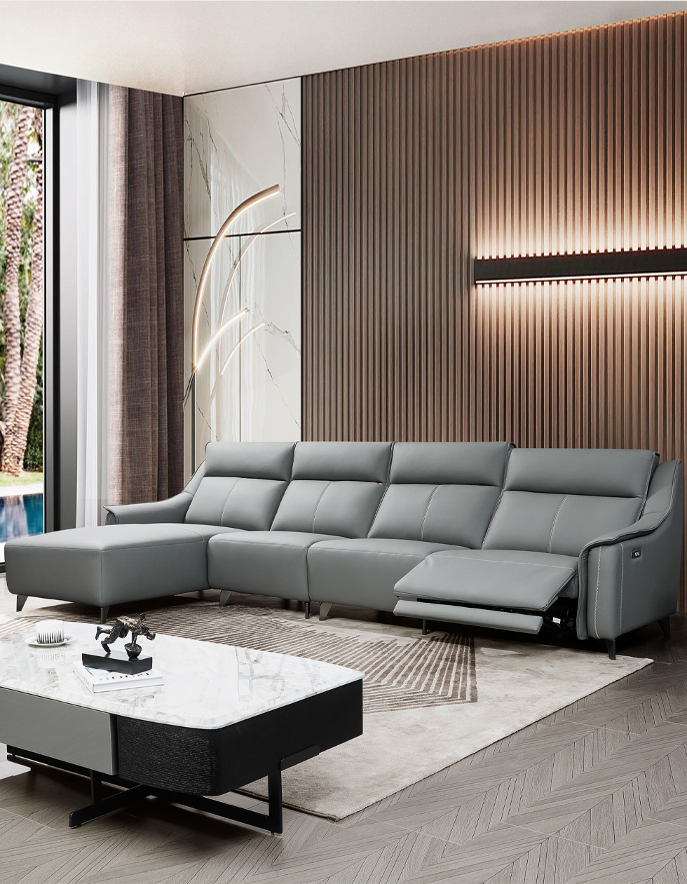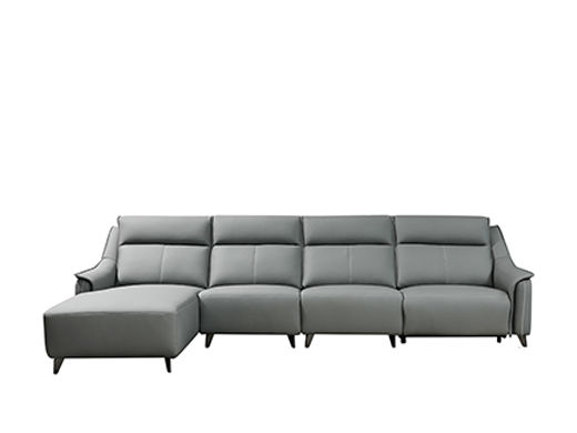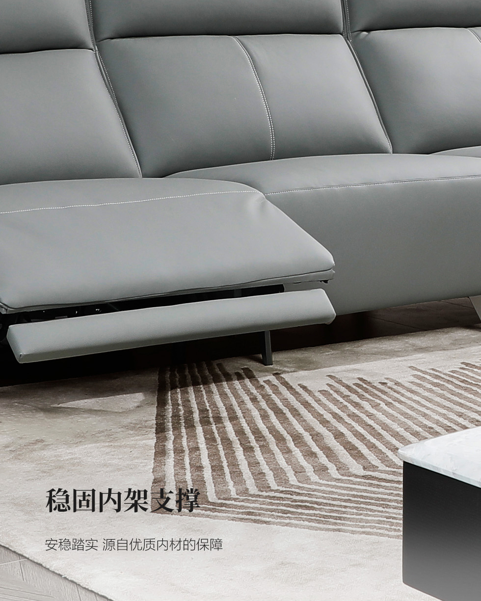 e家优选 现代简约 接触面头层黄牛皮 按木松木组合内框架 蛇簧+带 高回弹海棉座包 靠背3A公仔Q弹棉填充 功能架迈博五金 中灰 1+3+右贵妃带一个电动 皮艺功能转角沙发