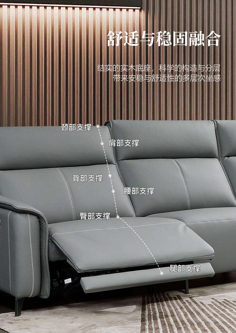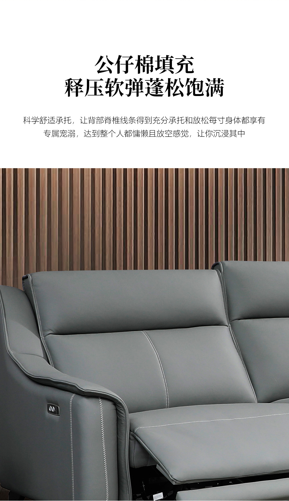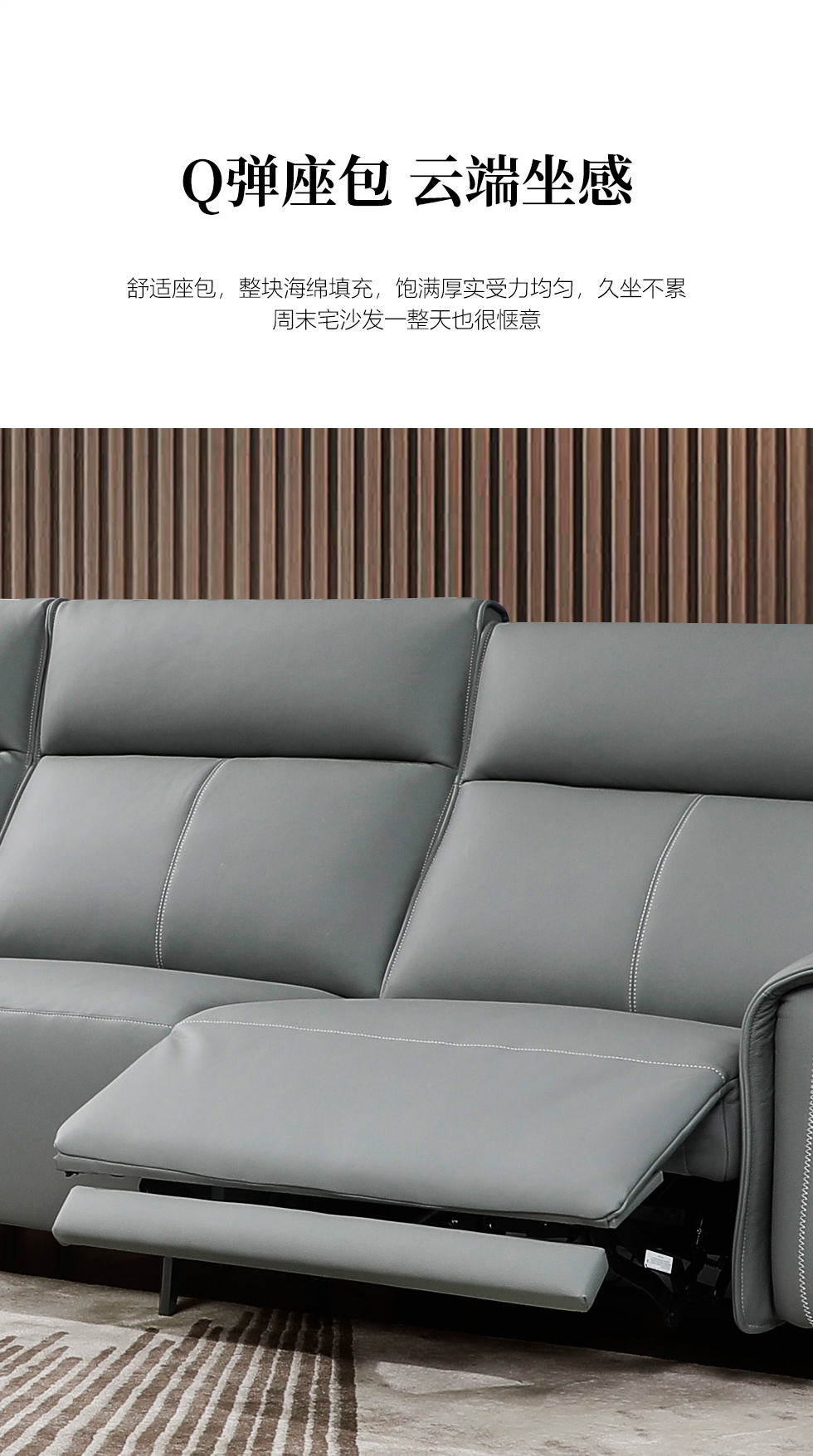 e家优选 现代简约 接触面头层黄牛皮 按木松木组合内框架 蛇簧+绷带 高回弹海棉座包靠包 扶手羽绒填充 头枕6档可以调节功能 二人位+四人位 皮艺组合功能沙发¥11599