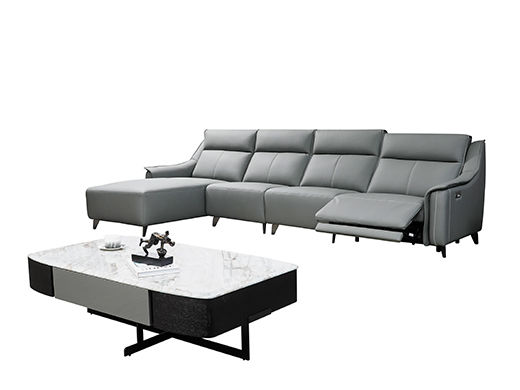 e家优选 现代简约 接触面头层黄牛皮 按木松木组合内框架 蛇簧+带 高回弹海棉座包 靠背3A公仔Q弹棉填充 功能架迈博五金 (1+4)组合皮艺功能沙发¥10786