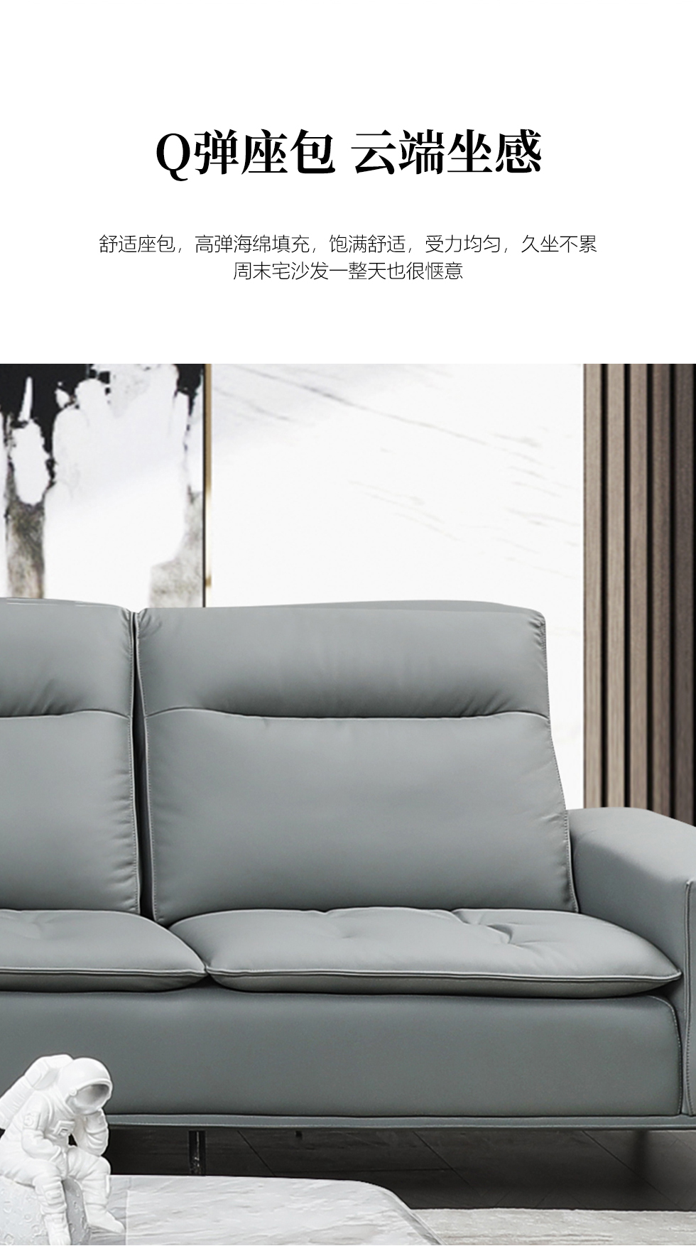 e家优选 现代简约 接触面头层黄牛皮 按木松木组合内框架 蛇簧+绷带 高回弹海棉座包靠包 扶手羽绒填充 中灰 四人位 皮艺2.95米沙发¥12815