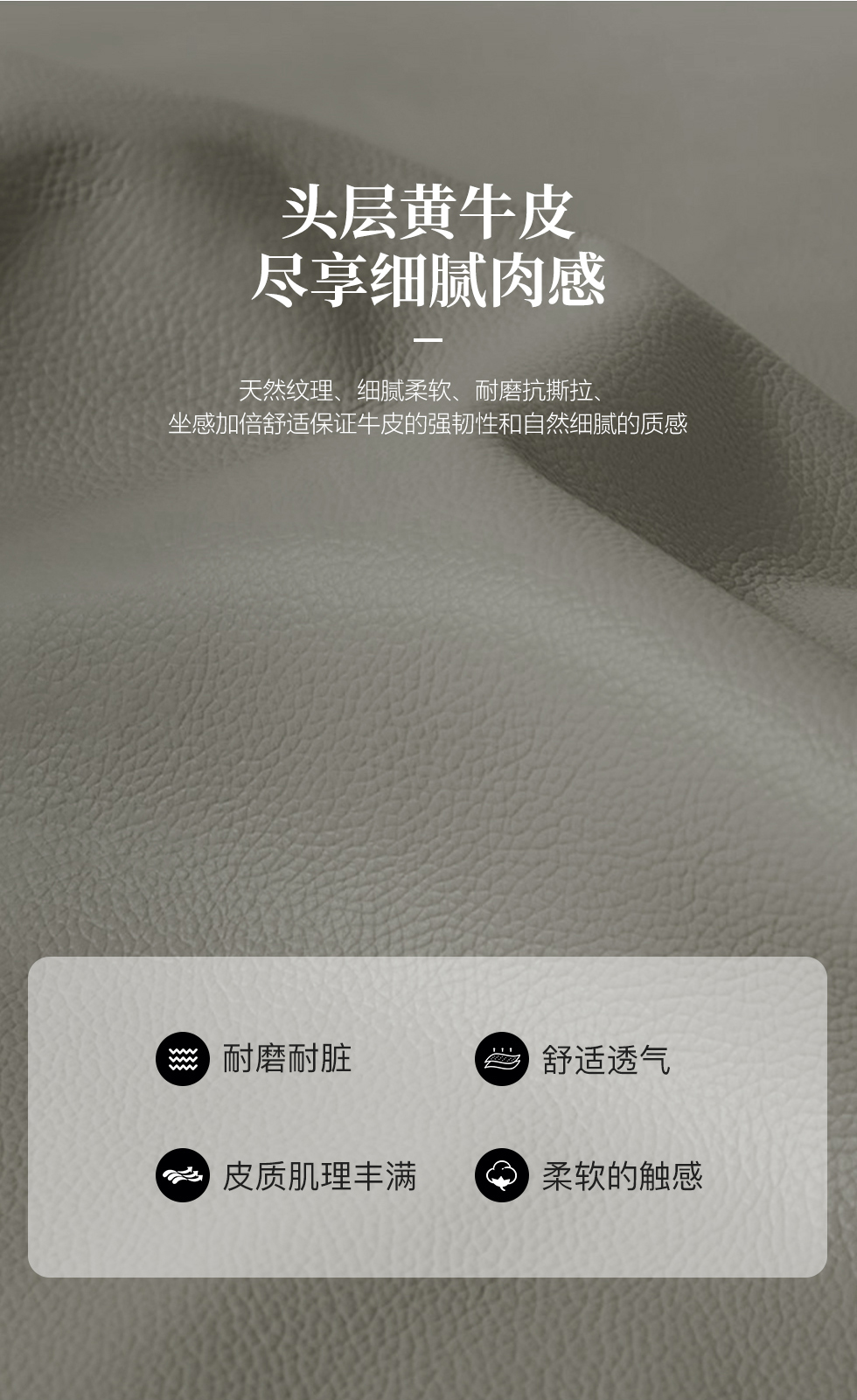 e家优选 现代简约 接触面头层黄牛皮 按木松木组合内框架 蛇簧+绷带 高回弹海棉座包靠包 扶手羽绒填充 中灰 1+3人位 皮艺组合沙发
