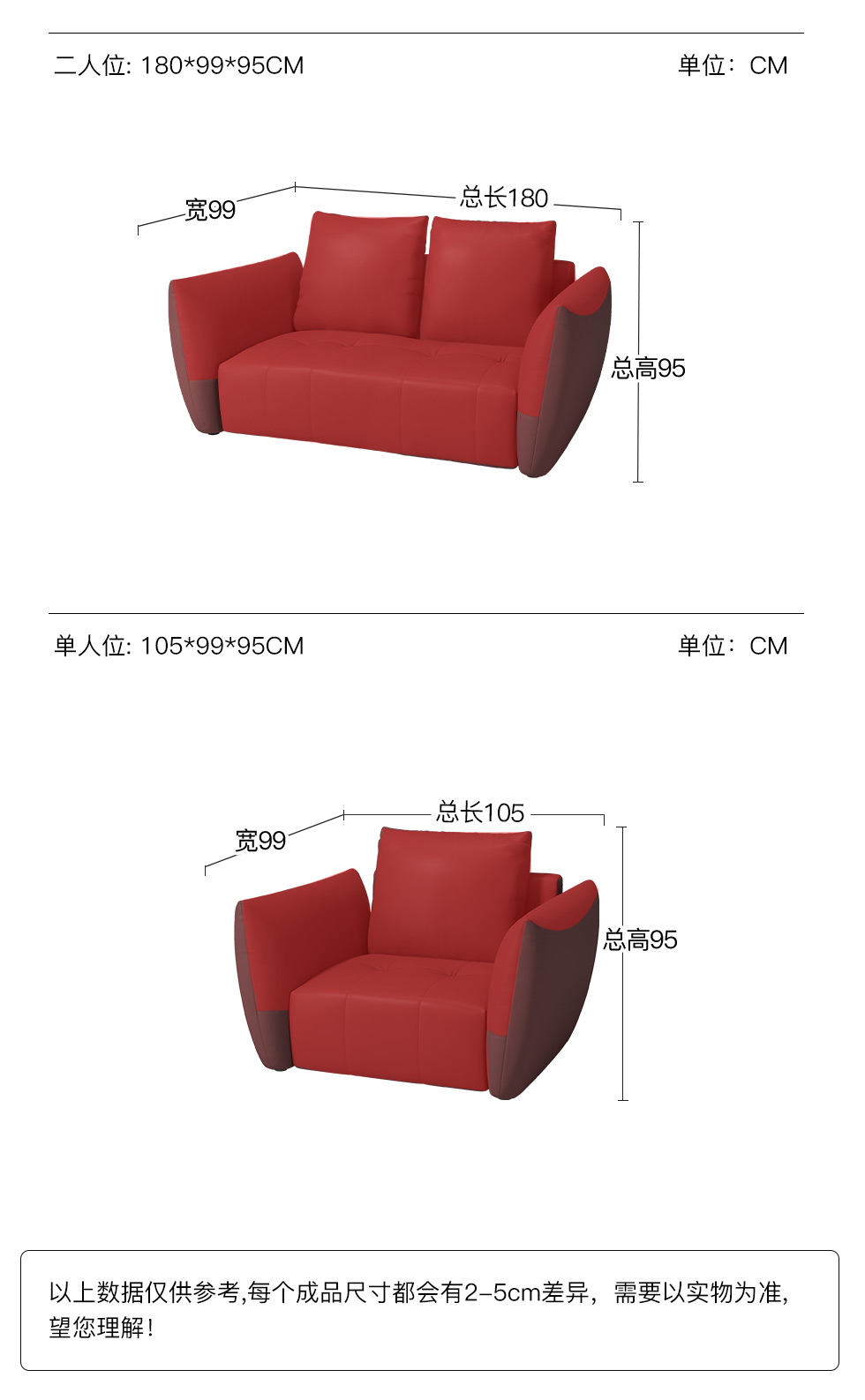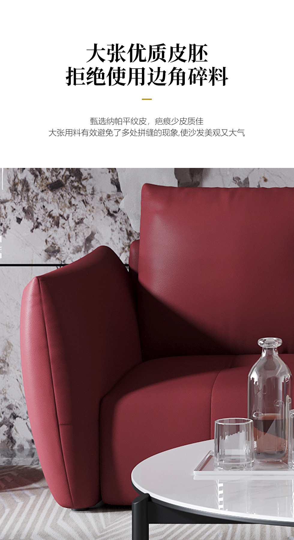 希奥 极简+纳帕平纹皮+40-45密度+五金脚 国潮红 皮艺(1+2+3)组合沙发