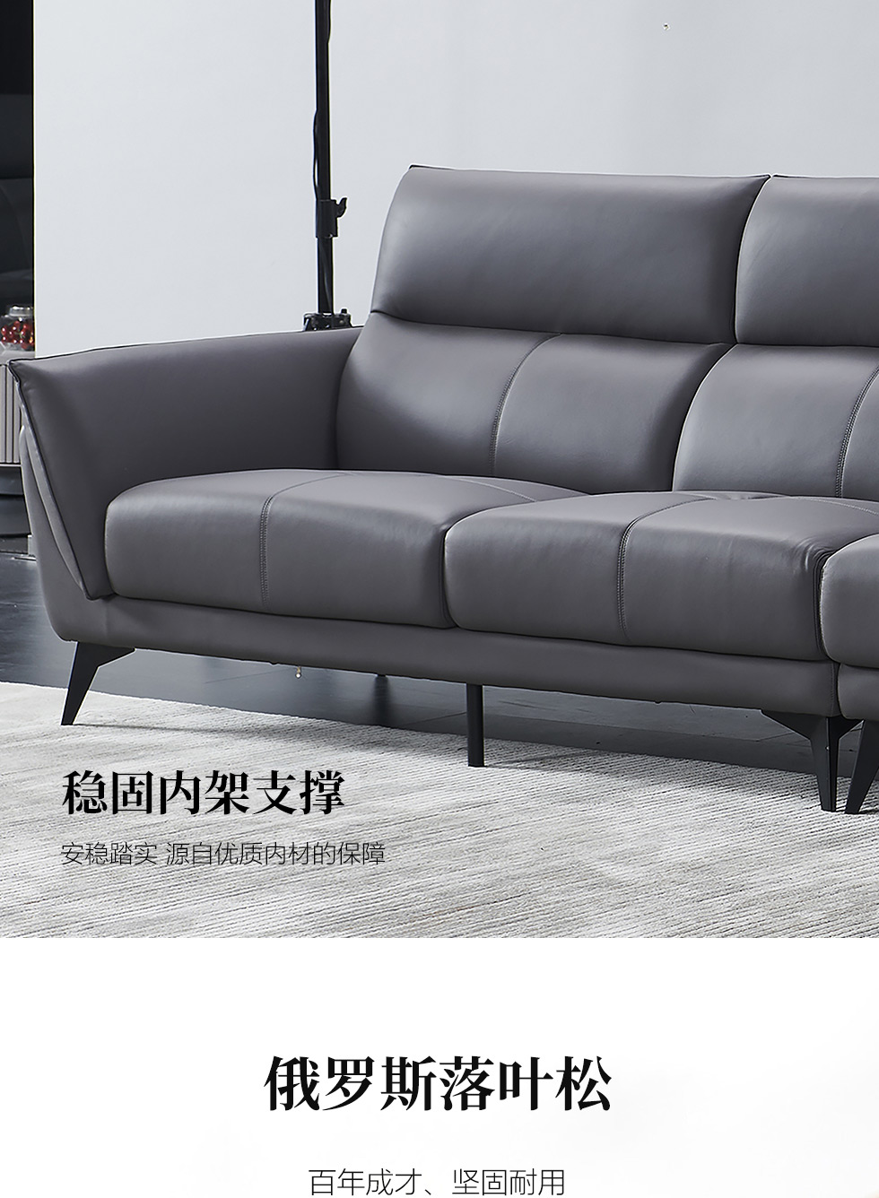 德卡图 现代简约 接触面进口头层牛皮+高密度海绵+俄罗斯进口落叶松框架+扶手羽绒+靠背公仔棉+可活动头枕 1+3+左贵妃位 深灰色 皮艺转角3.57米沙发¥10732