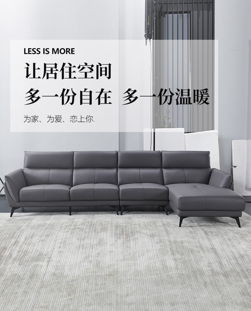 德卡图 现代简约 松木+多层板板+接触面头层牛皮+仿皮+高回弹海绵 3+左贵妃 3.53米沙发¥16557