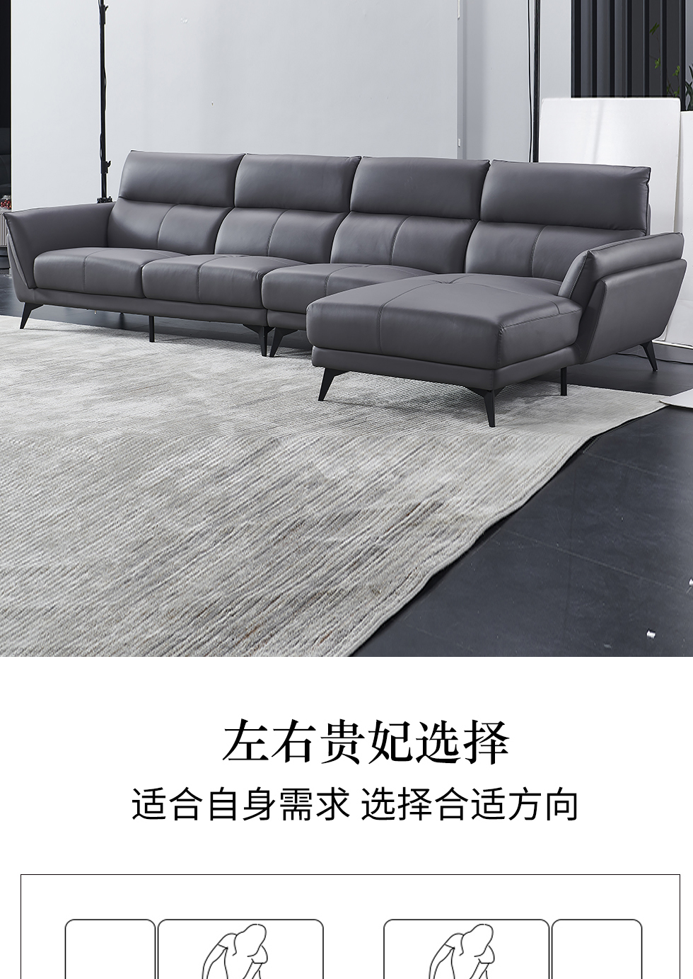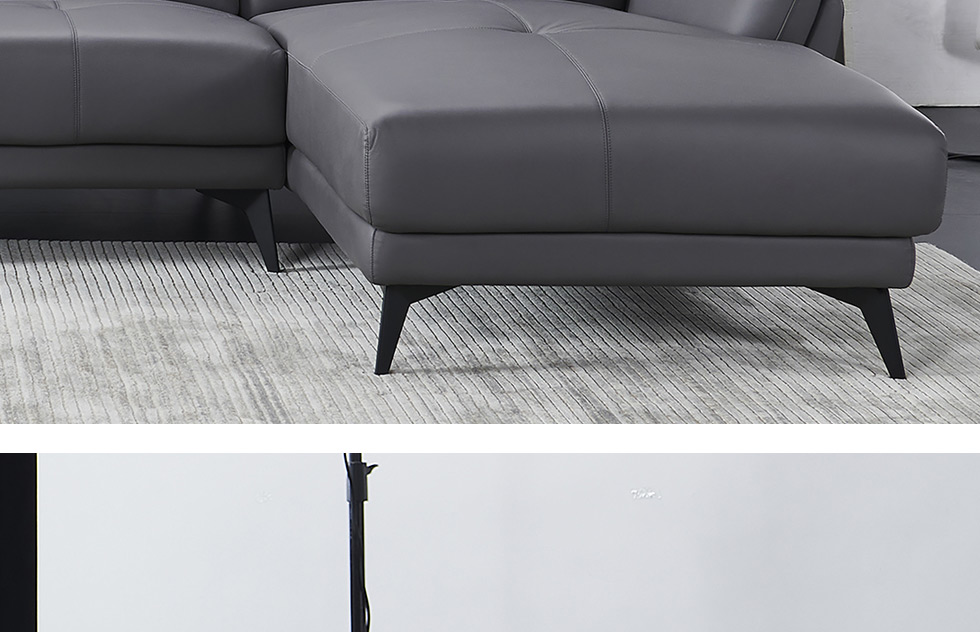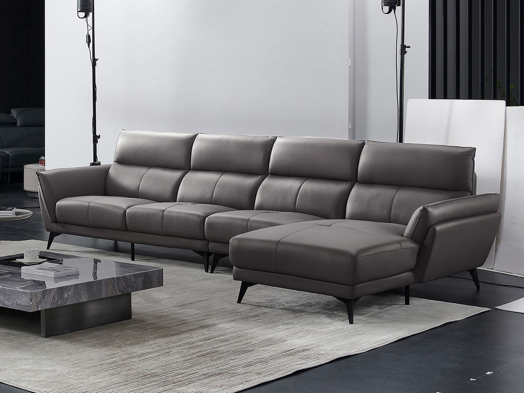 德卡图 现代简约 接触面进口头层牛皮+高密度海绵+俄罗斯进口落叶松框架+可活动头枕 1+3+左贵妃位 灰色 皮艺转角3.5米沙发