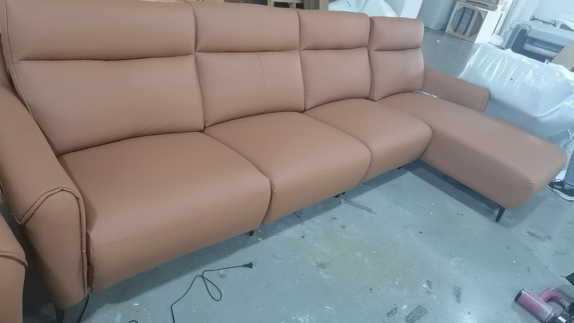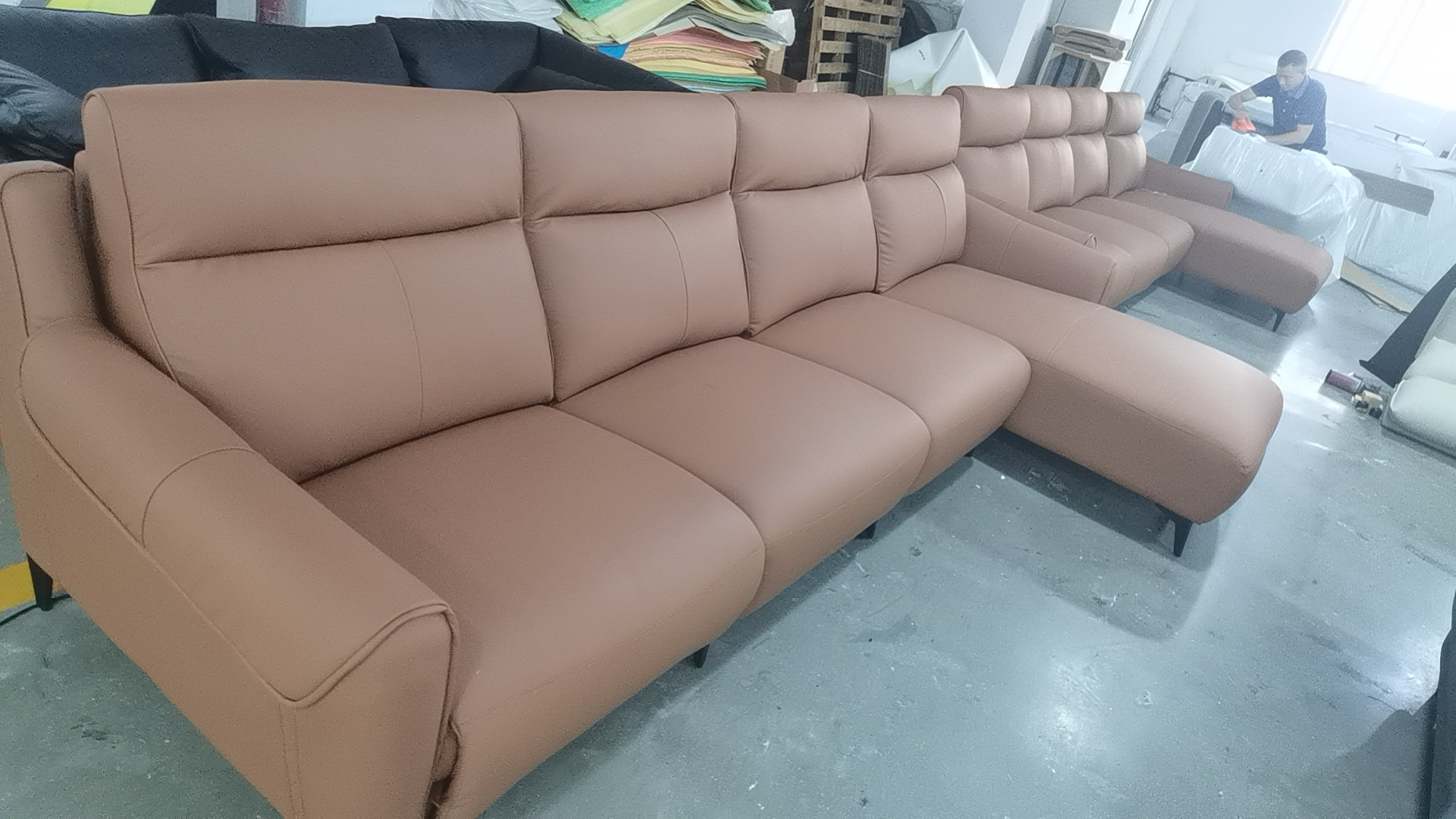 德卡图 现代简约 接触面进口头层牛皮+高密度海绵+俄罗斯进口落叶松框架 1+3+左贵妃位 浅棕色 皮艺转角3.36米沙发¥13013