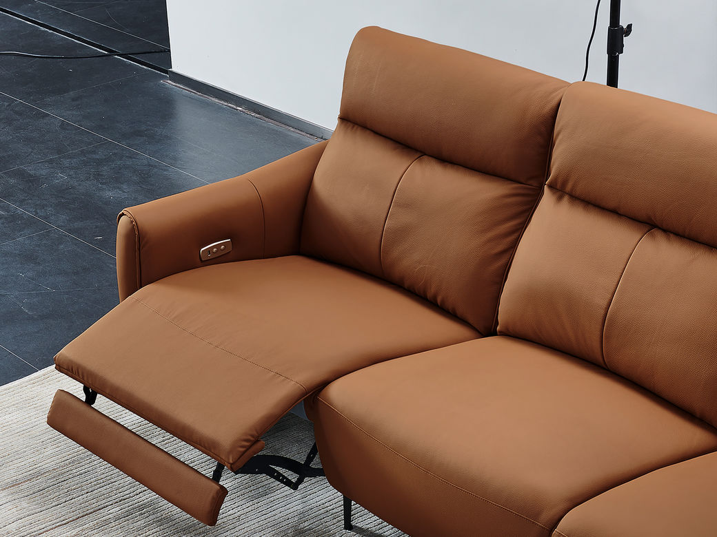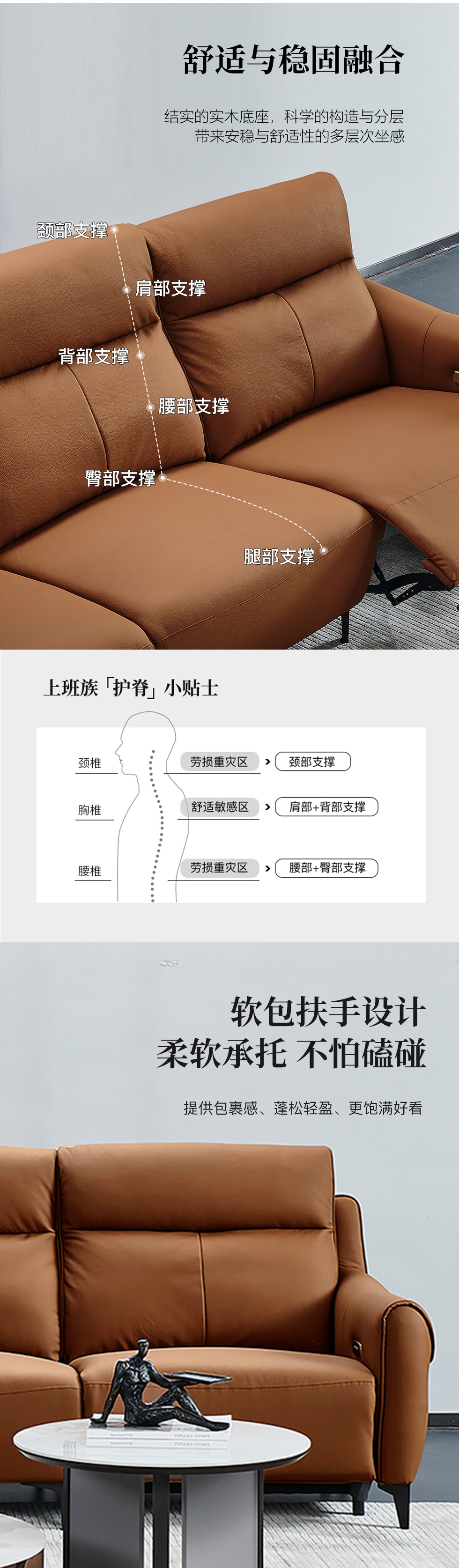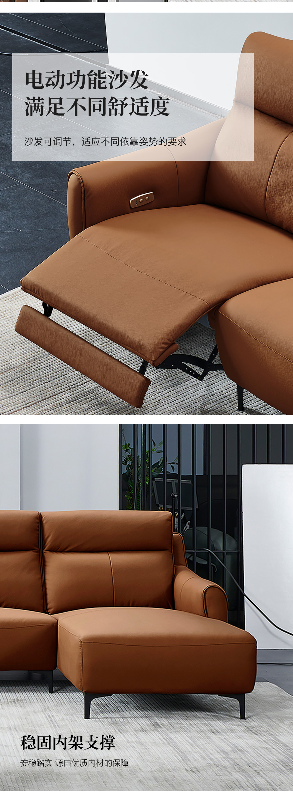 德卡图 现代简约 接触面进口头层牛皮+高回弹海绵+高密度海绵+俄罗斯进口落叶松框架+靠背公仔棉 单位(功能)+三位+右贵妃位 焦糖橙色 皮艺转角3.3米沙发