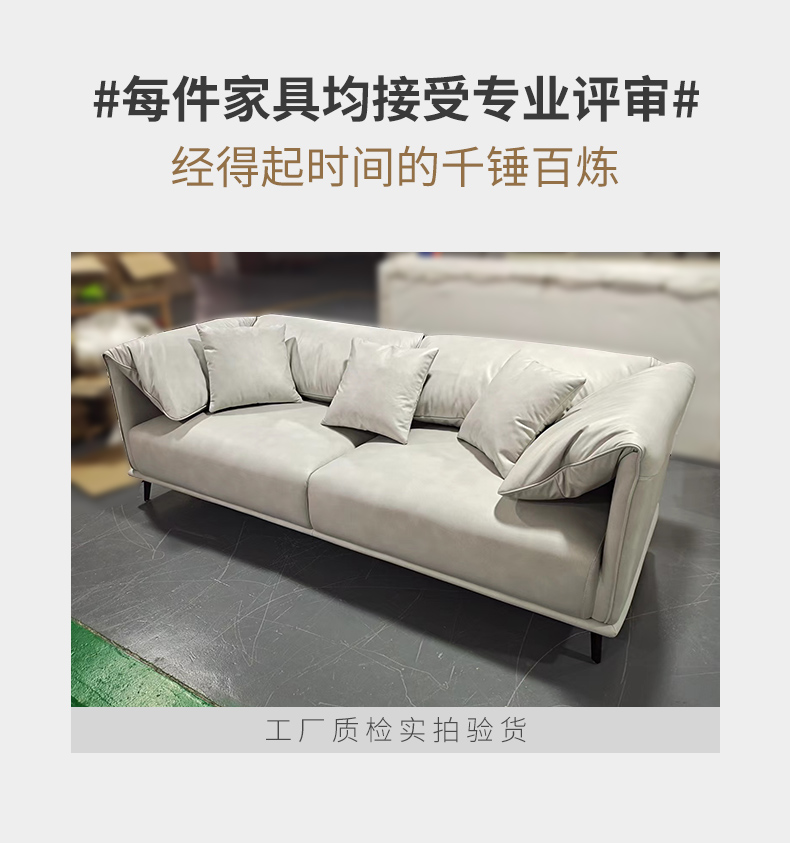 非凡工艺 现代简约 科技布+高密度海绵+羽绒+松木+桉木+弹簧+橡筋+网布+实木脚 2.9米 四人位 布艺沙发