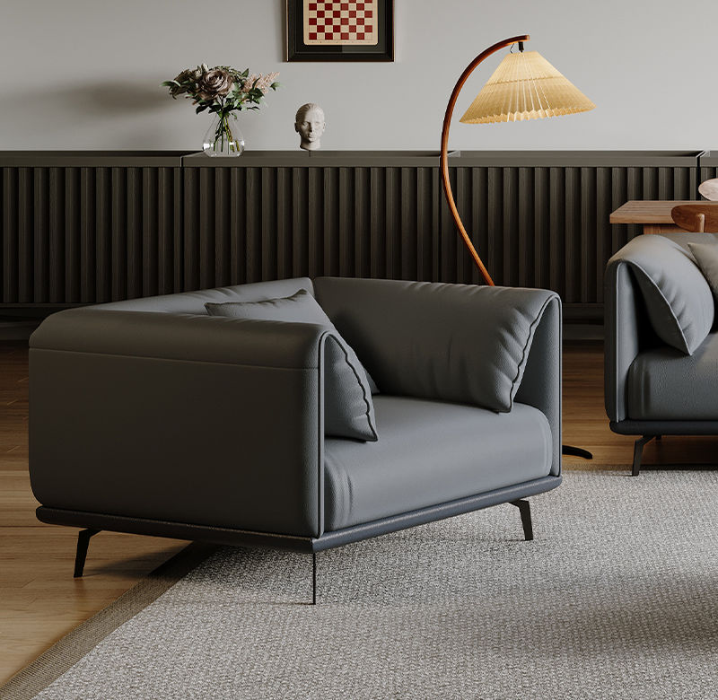 非凡工艺 现代简约 高档柔性科技布+全实木落叶松框架+高强度镀金拉簧 蓝灰色 双扶单人位+双扶二人位+双扶三人位 沙发¥7761