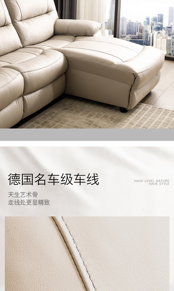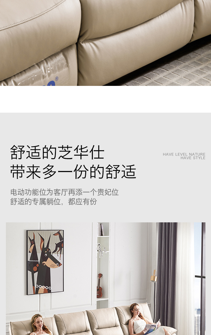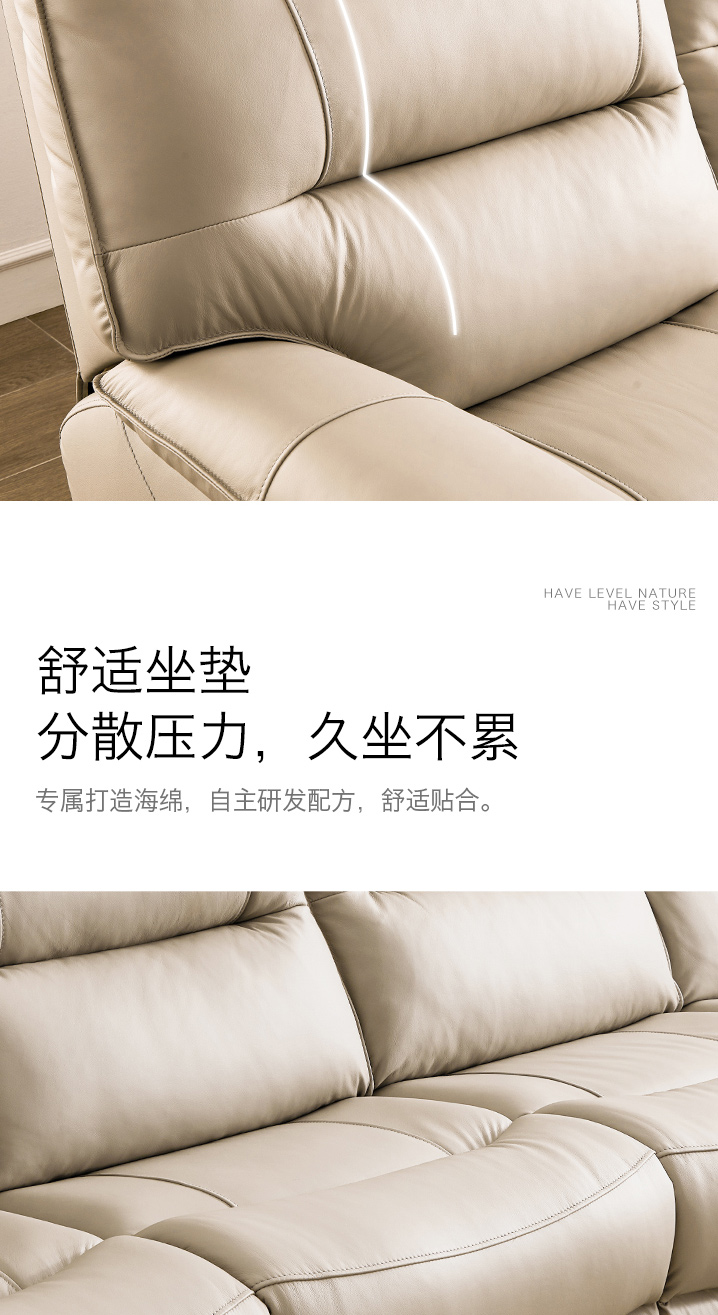 芝华仕 现代简约 接触面进口头层奶牛皮+科技布+合金钢架+进口实木+多层实木板+合金脚+太空绵+高回弹海绵 三人位【双电机】皮艺2.52米沙发¥15804