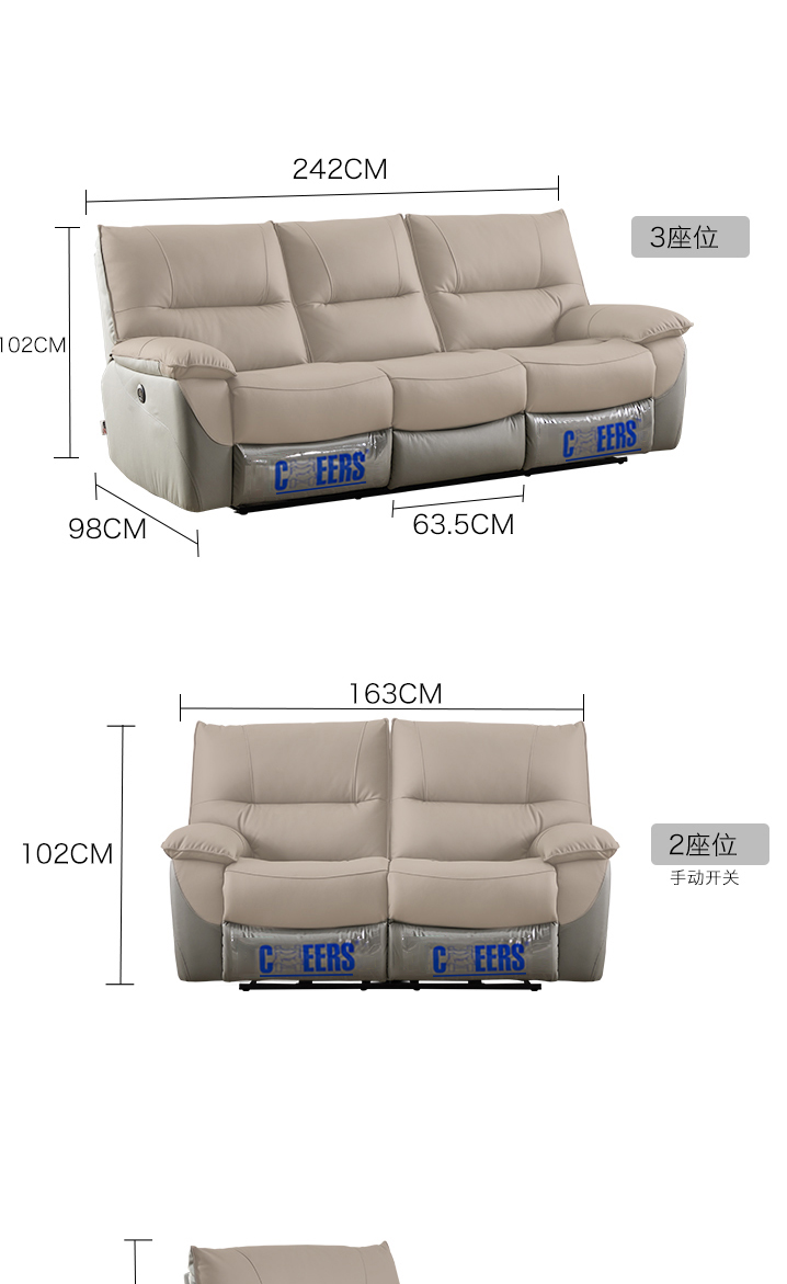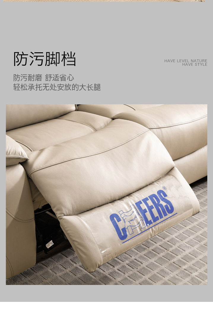 芝华仕 现代简约 接触面进口头层奶牛皮+PVC+合金钢架+进口实木+多层实木板+合金刚架脚+塑胶防刮胶套+太空绵+高回弹海绵 三人位【双电机】功能皮艺2.6米沙发1件商品搭配总价: