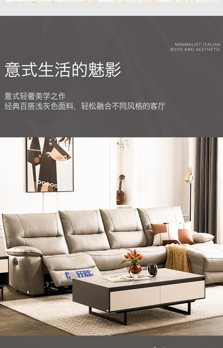 芝华仕 现代简约 接触面进口头层奶牛皮+PVC+合金钢架+进口实木+多层实木板+合金脚+太空绵+高回弹海绵 三人位【双电机】功能皮艺2.75米沙发¥13665