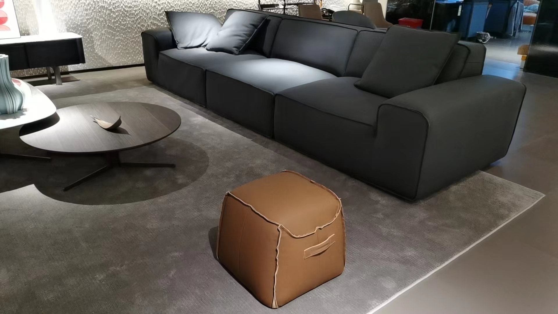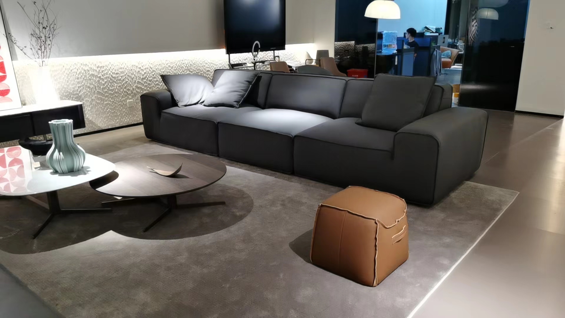 希奥 极简 面料:全清纳帕牛皮 内框架:俄罗斯樟子松 填充材质:高回弹乳胶棉+白鹅绒 双扶四位 网红大黑牛3.2米沙发