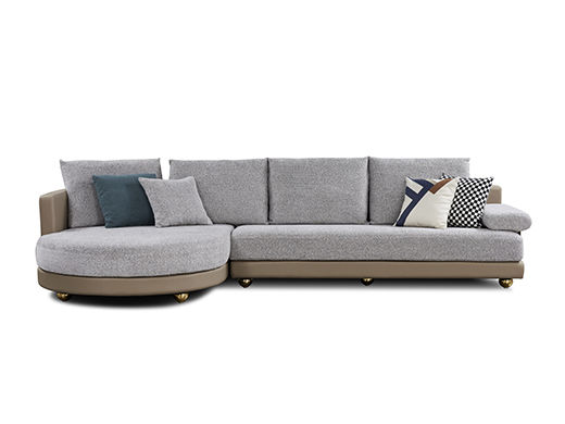 拜洛迪 轻奢米洛提棉麻布+超迁皮 灰色 1+3+右转角3.43米沙发
