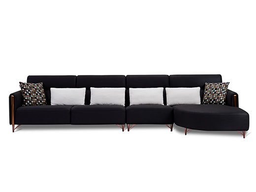 梵纳意简 极简 接触面头层牛皮+多层实木板+实木框架+高回弹海绵+不锈钢五金+羽绒 右转角沙发 Q361网红 极简钢琴键4.1米沙发