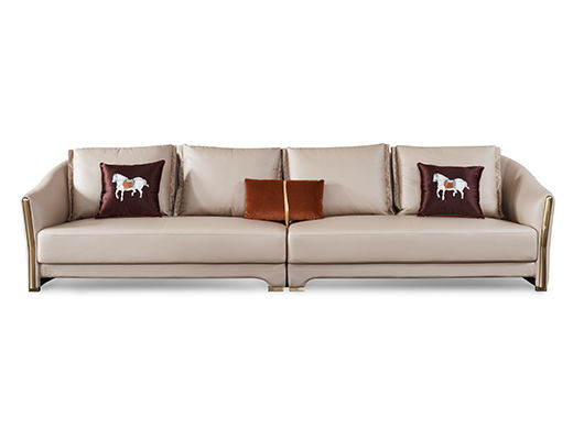 拉斐尔 轻奢 纳帕皮+仿真皮+(单位绒布)+进口落叶松+多层实木板+高回弹海绵+电镀不锈钢五金 1+1+2+4 沙发¥52816