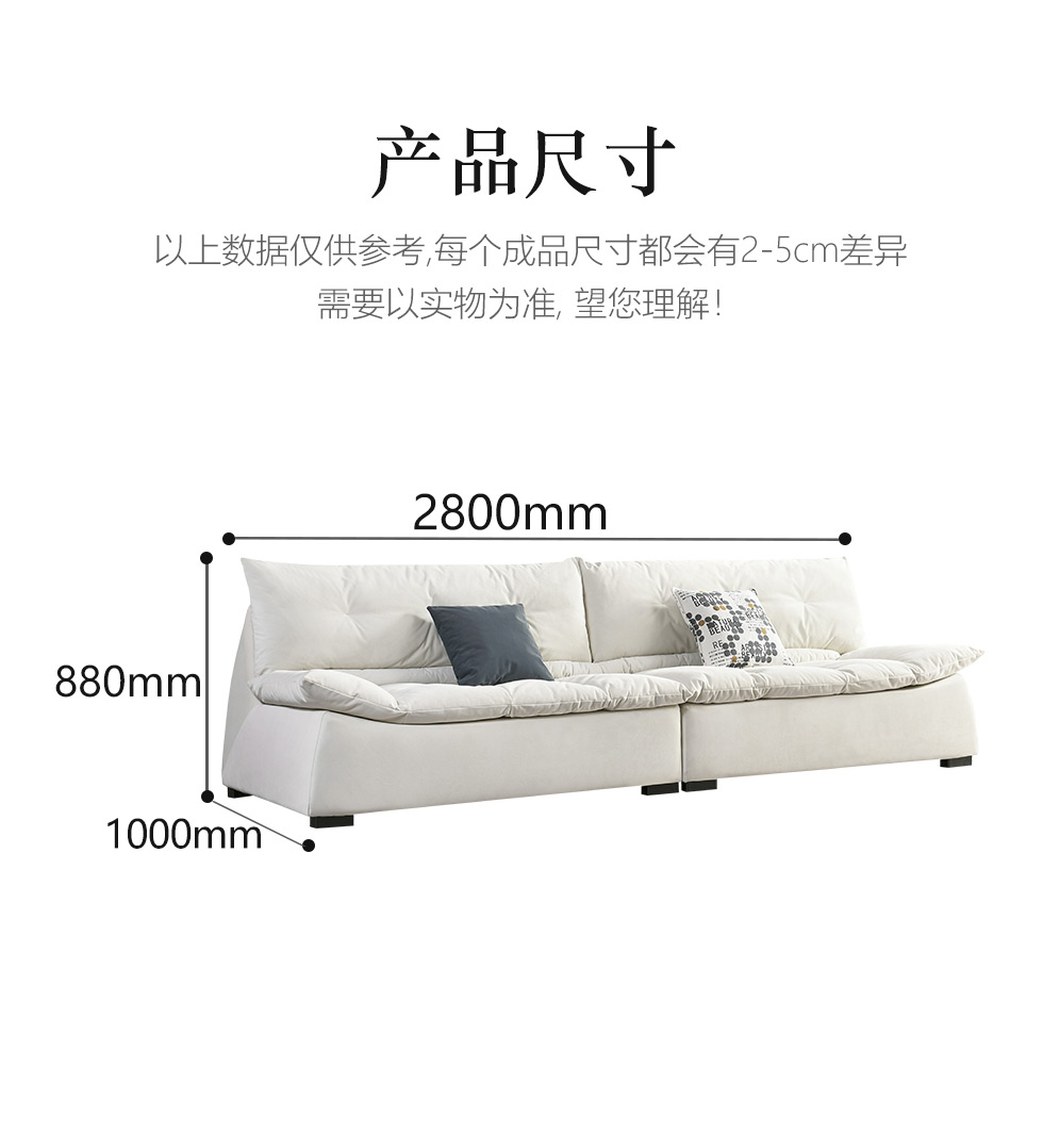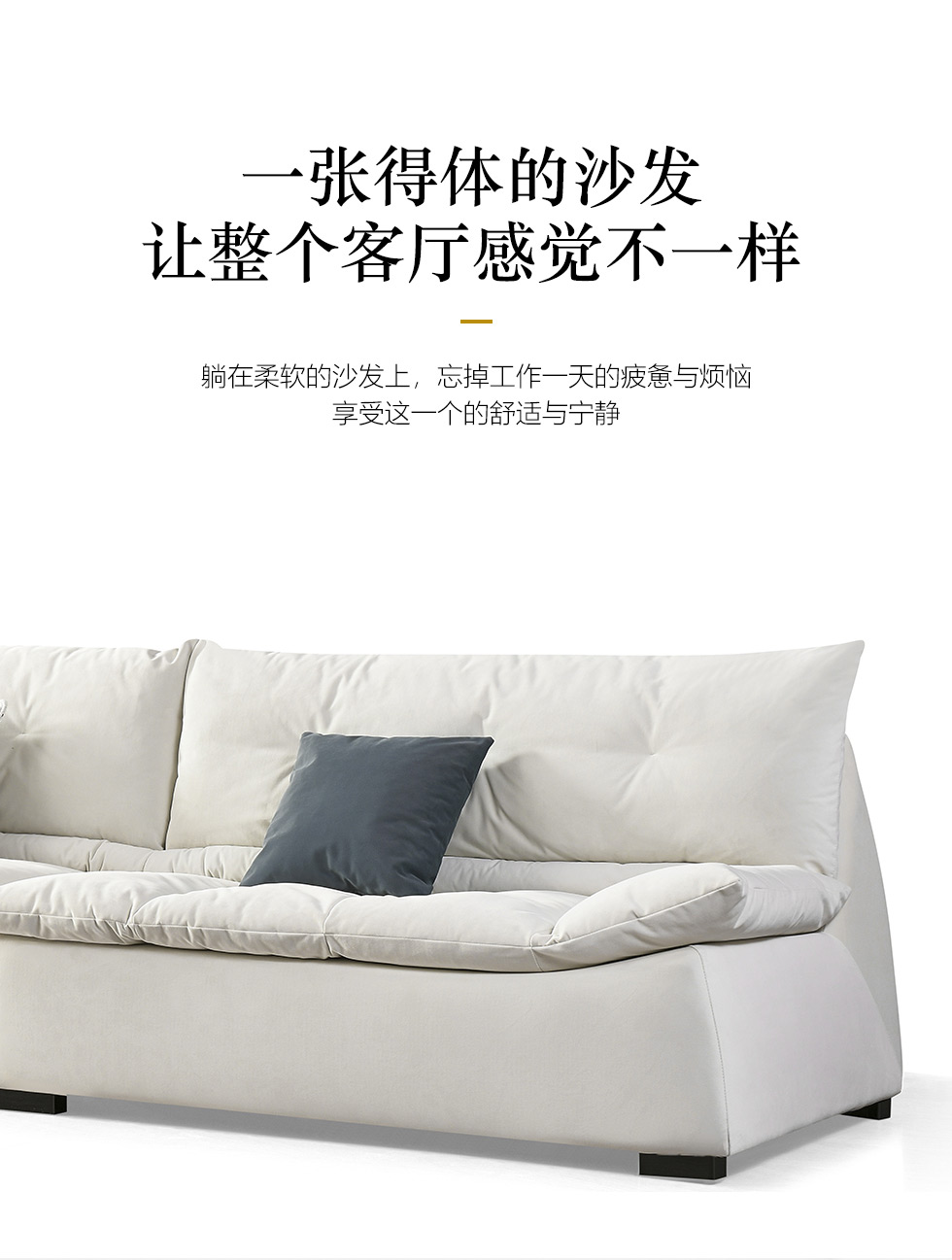 非凡工艺 现代简约 俄罗斯落叶松+蛇形弹簧+弹力繃带框架 高密度回弹海绵+羽绒座包 羽绒靠包 法国绒面料 5公分矮脚 全拆洗设计 图片色 四人位 直排2.8米沙发