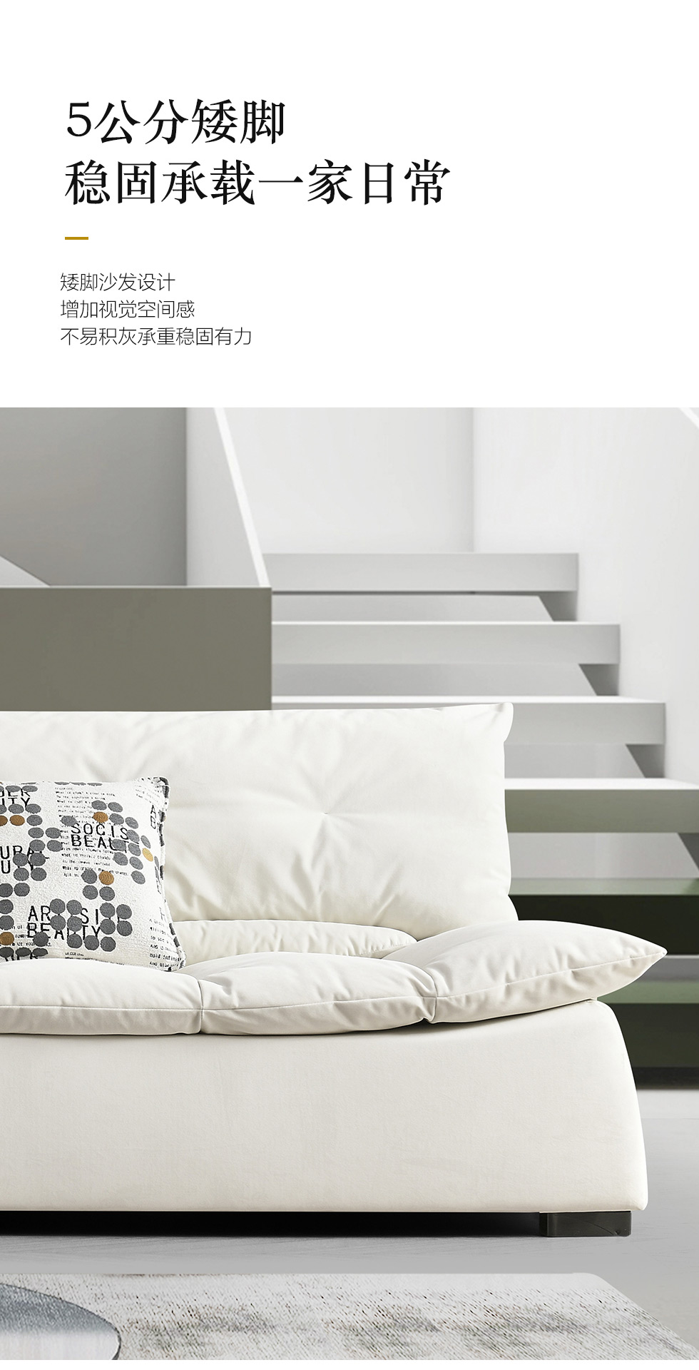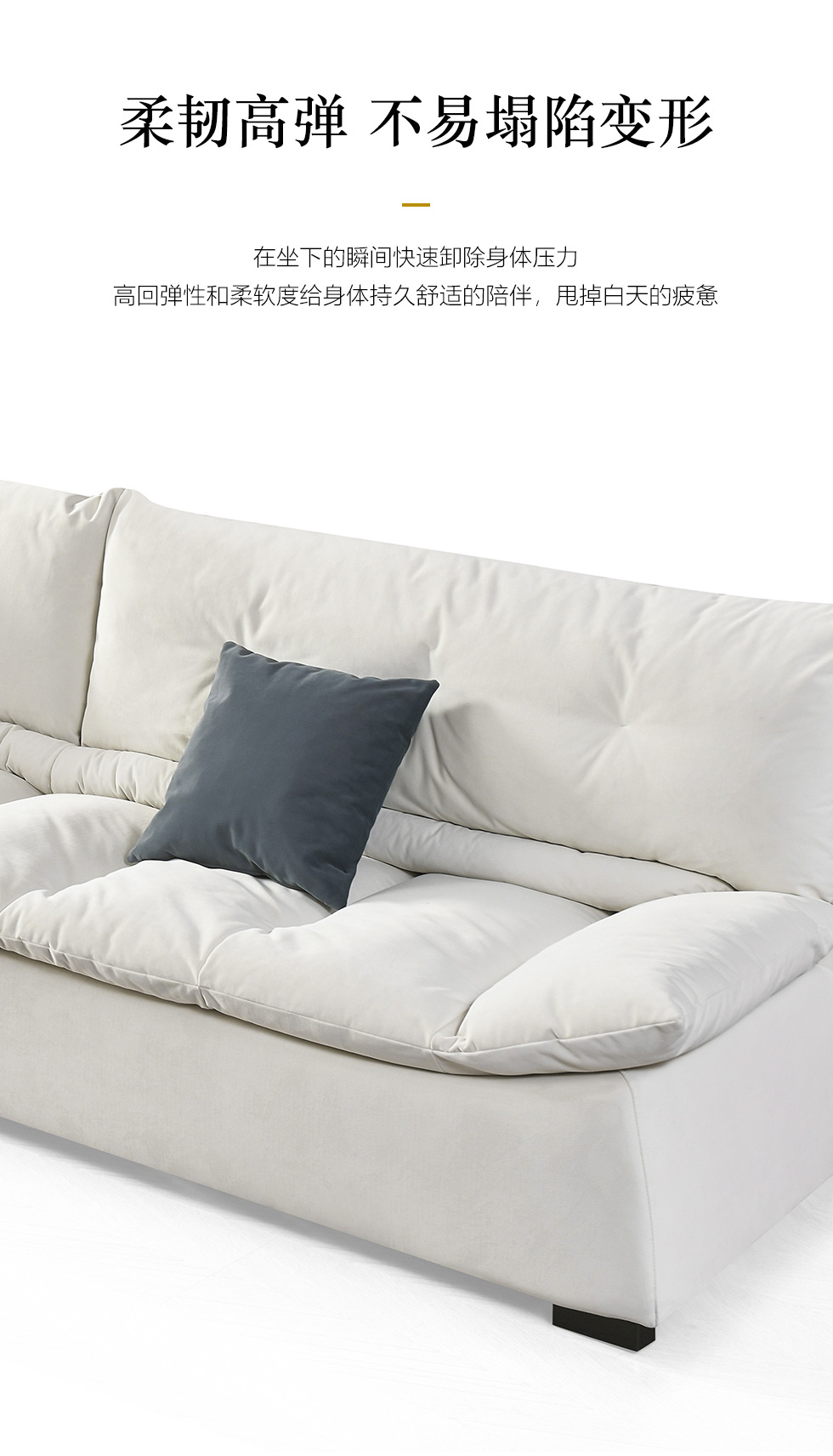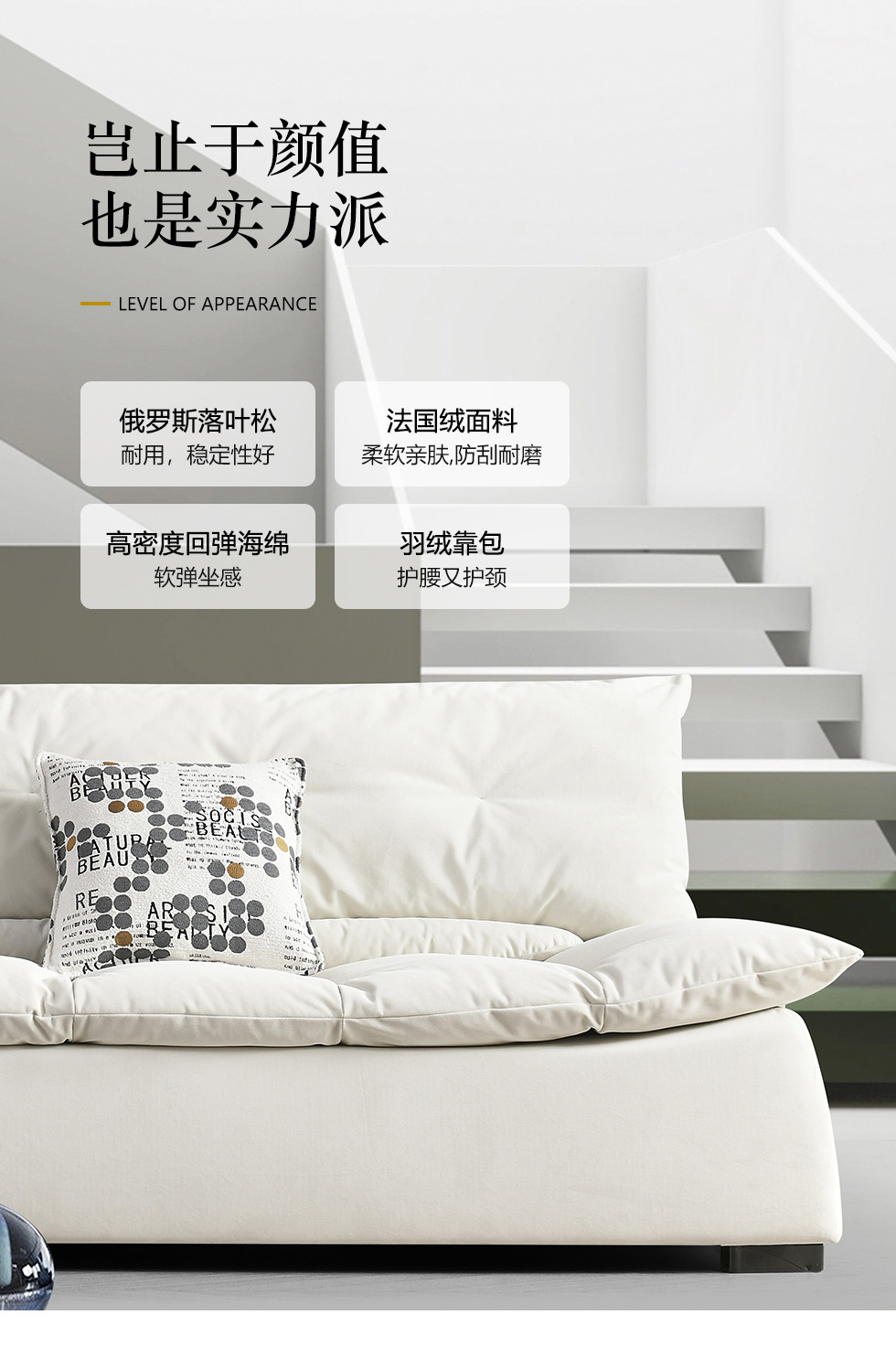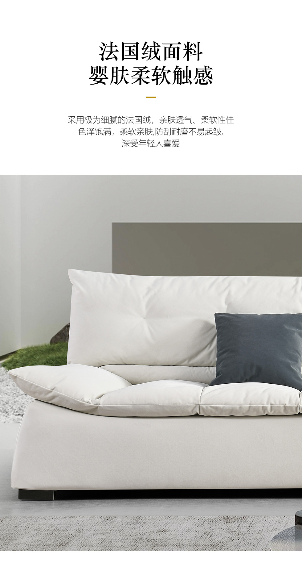 非凡工艺 现代简约 奶油风 科技绒+高密度海绵+羽绒+松木+桉木+弹簧+橡筋+网布+实木脚 3.2米 五人位分体 绒艺沙发¥13221