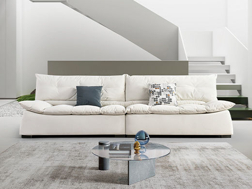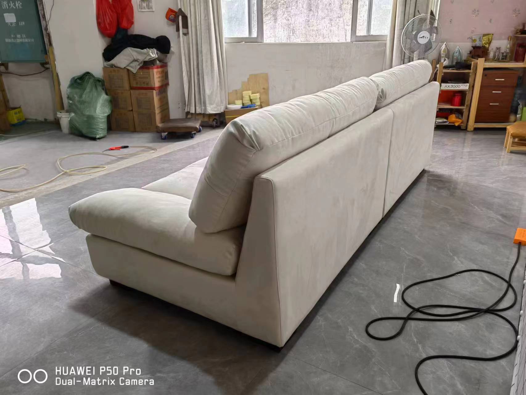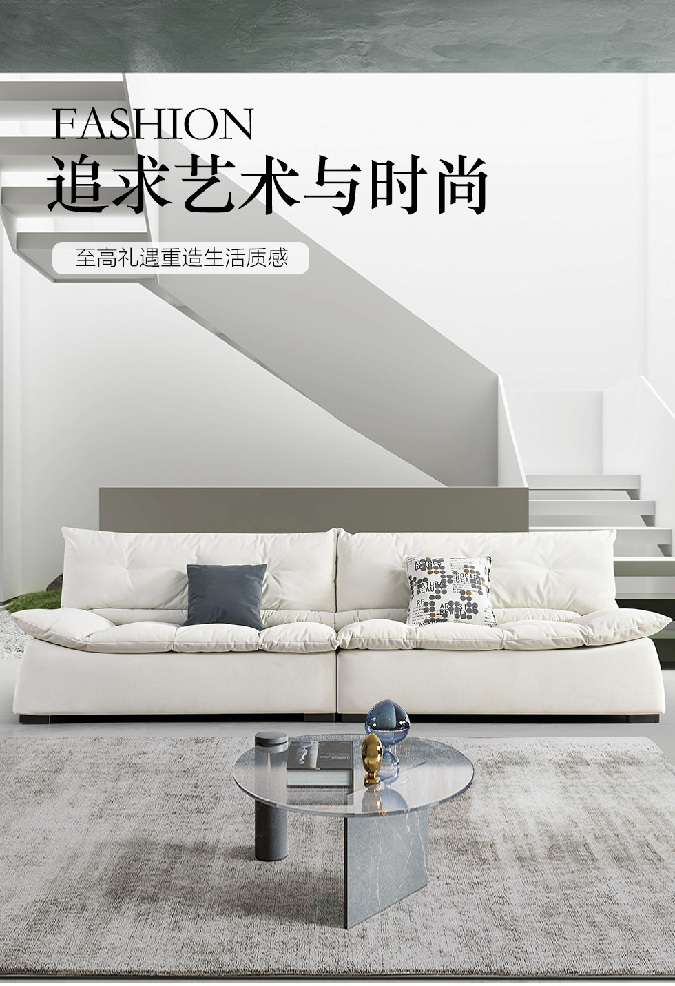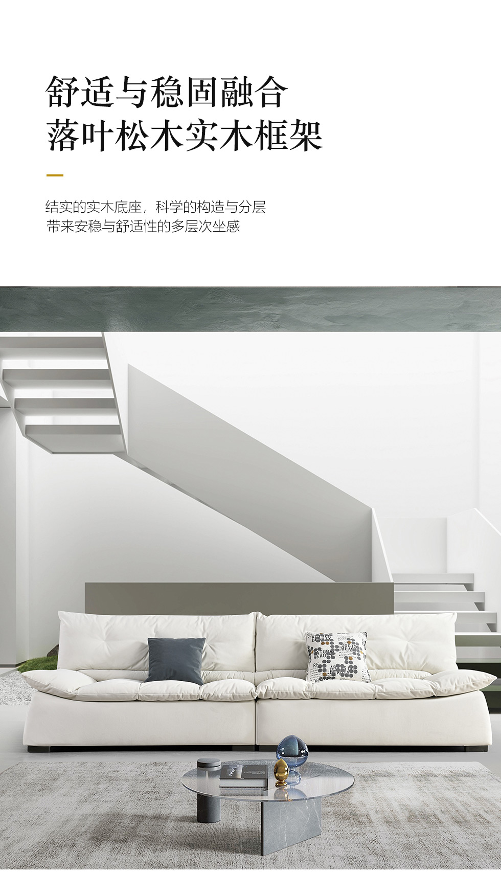 非凡工艺 现代简约 奶油风 科技绒+高密度海绵+羽绒+松木+桉木+弹簧+橡筋+网布+实木脚 3.2米 五人位分体 绒艺沙发¥13221