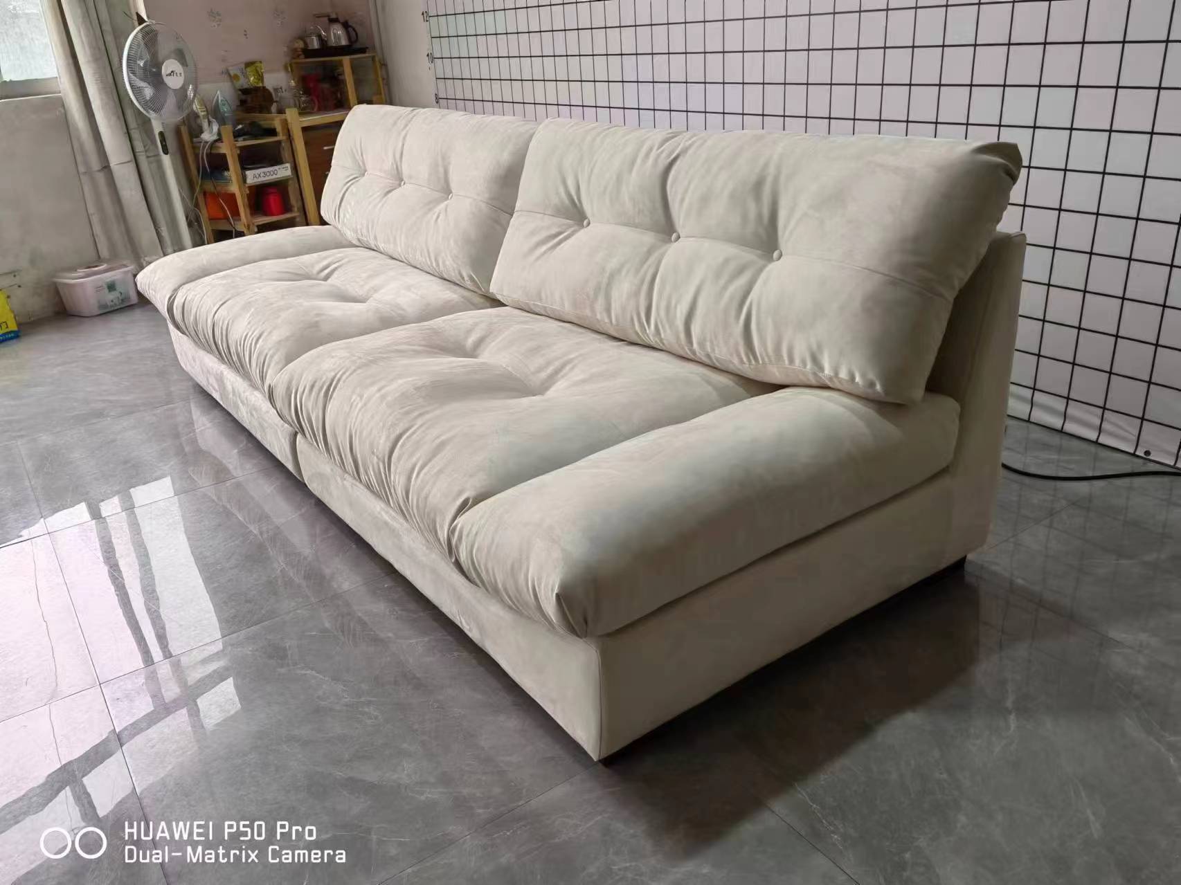 非凡工艺 现代简约 猫传绒布+全实木内架+多层实木板+高回弹海绵+5公分实木圆脚 颜色 自由组合 布艺网红4.32米沙发¥4199