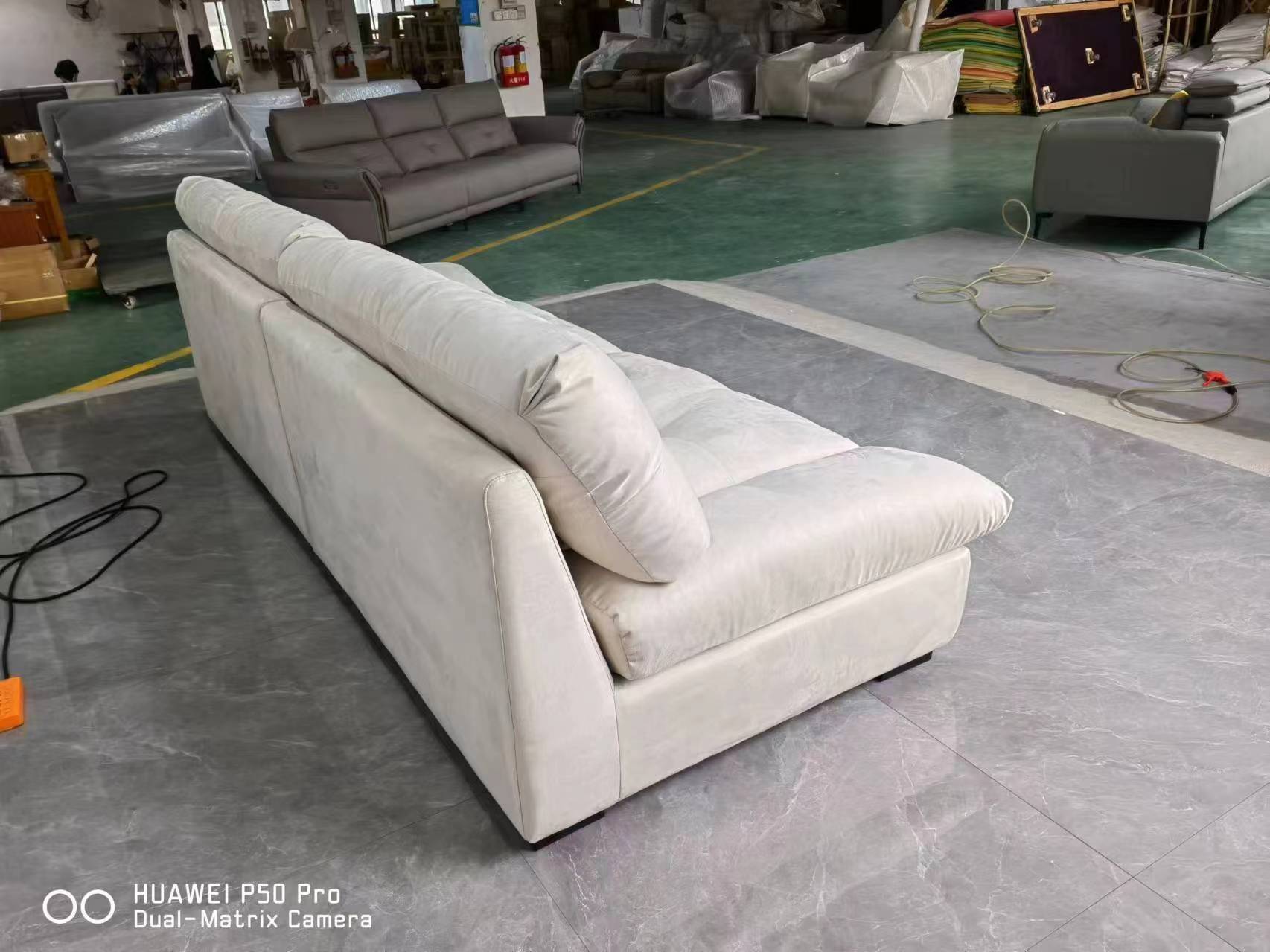 非凡工艺 现代简约 高档双面磨砂布+实木框架+海绵+羽绒公仔包+实木脚 布艺转角3.98米沙发(左三+大右贵妃)开边款¥4592