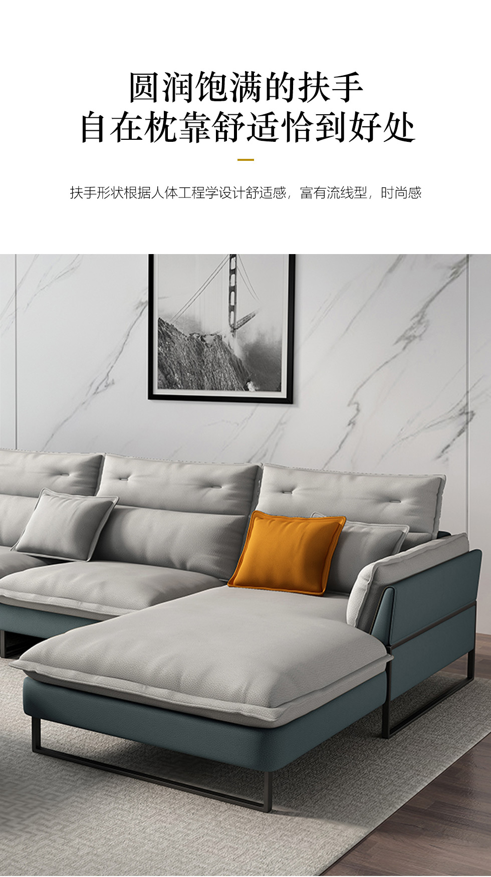 A系优选 现代简约 科技布+高密度东亚海绵+实木框架 3.53米沙发¥6058