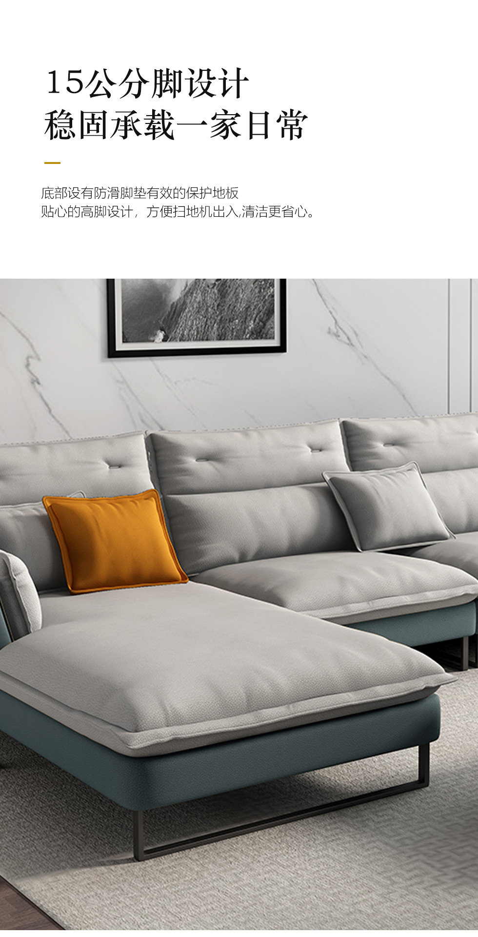 A系优选 现代简约 接触面超纤皮+科技布+仿皮+实木框架+海绵+碳素五金脚 皮艺 3.3米 转角沙发(3+1+左贵妃)¥6058