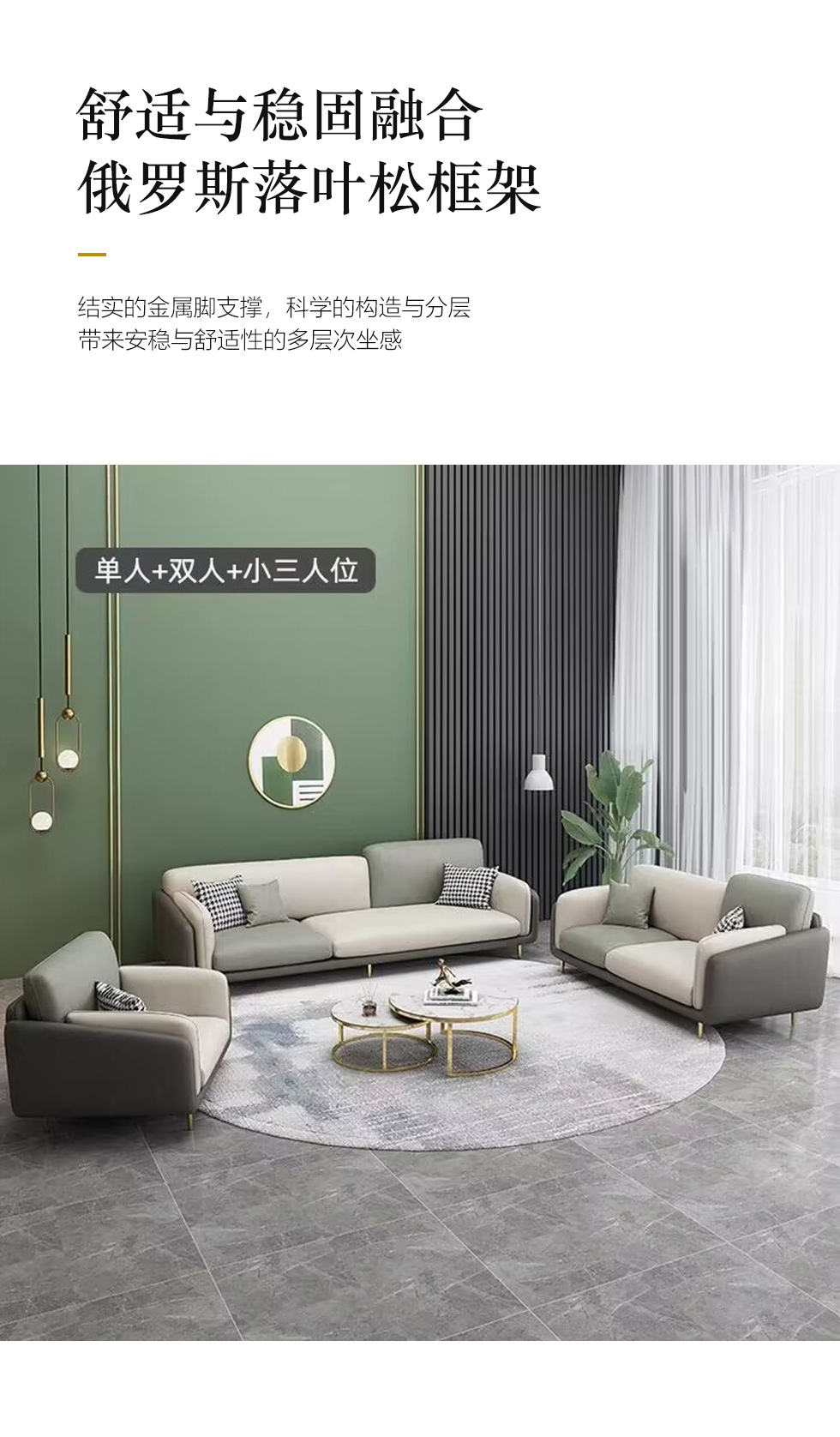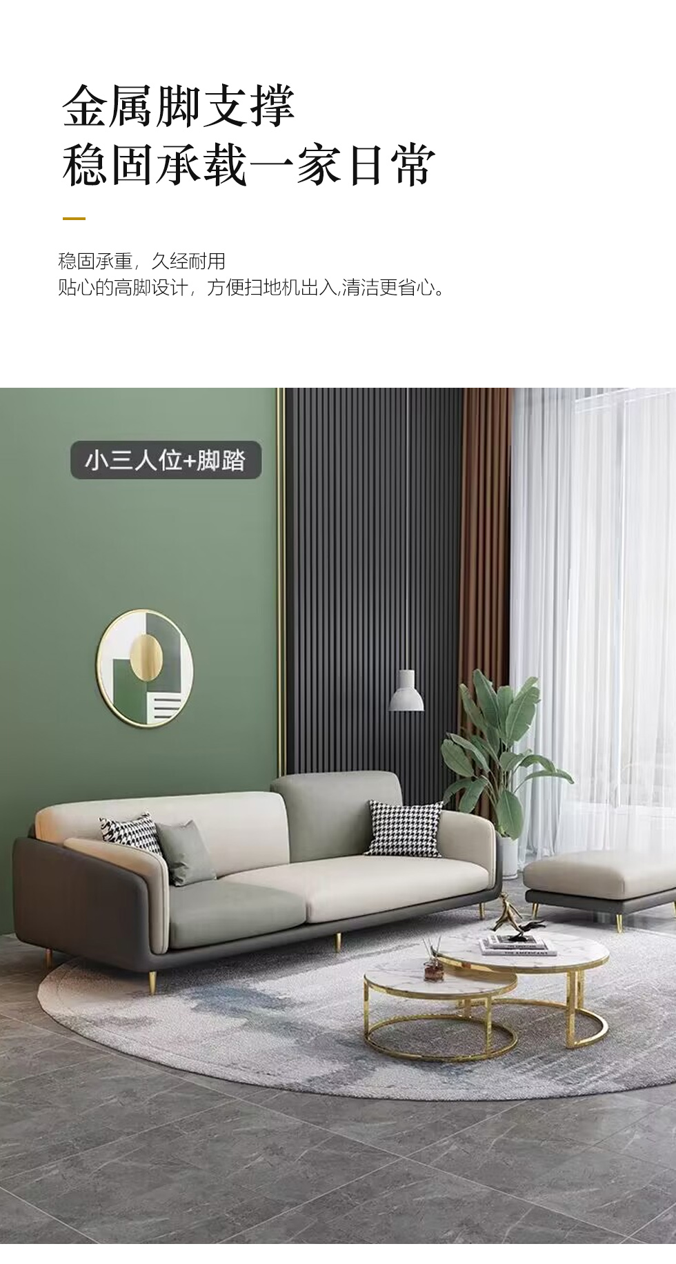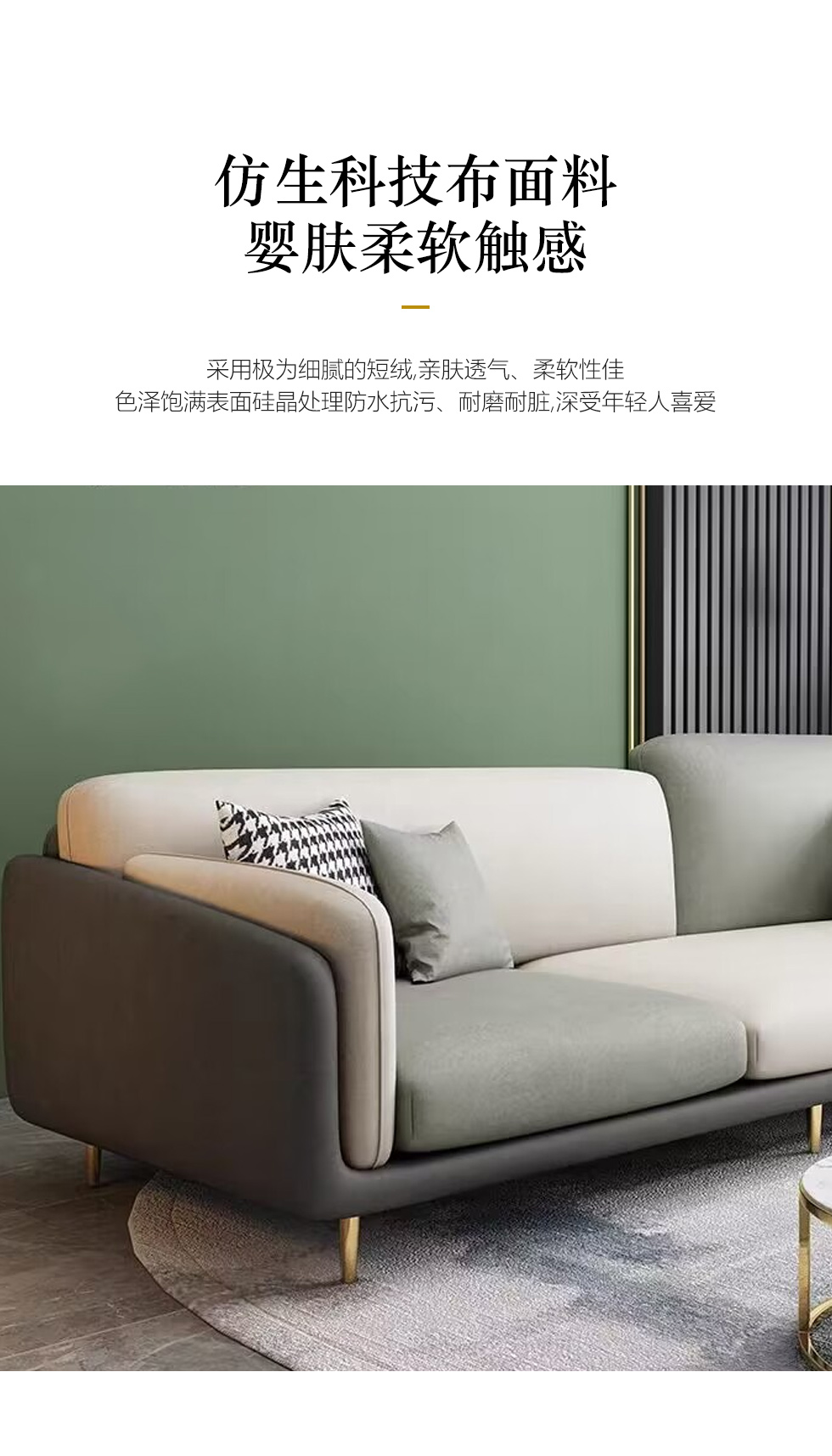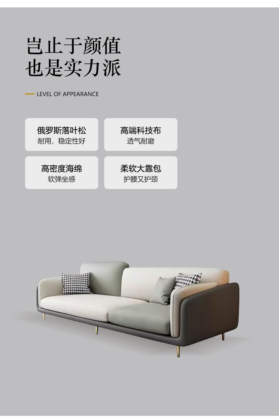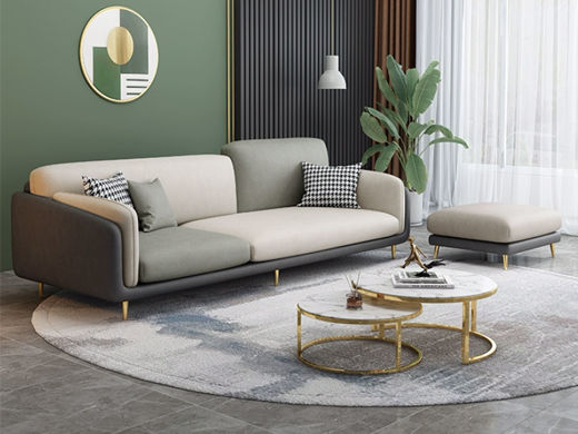 A系优选 现代简约 优质科技布料+抛光实木内架+合成板材框架+坐包填充高密度纯海绵+12公分五金脚 深灰色+米灰色 四位2.8米+脚踏