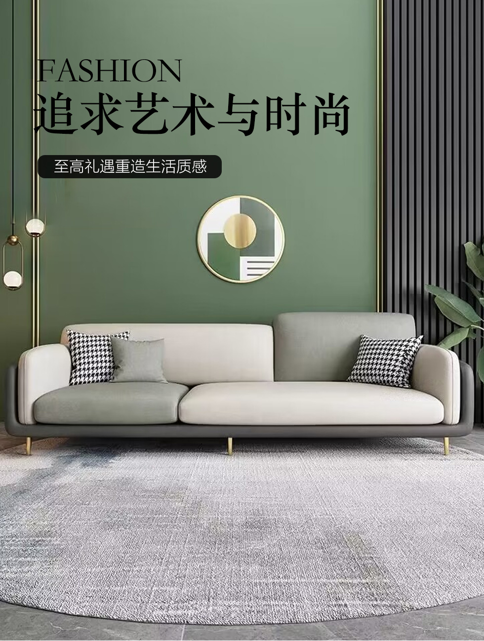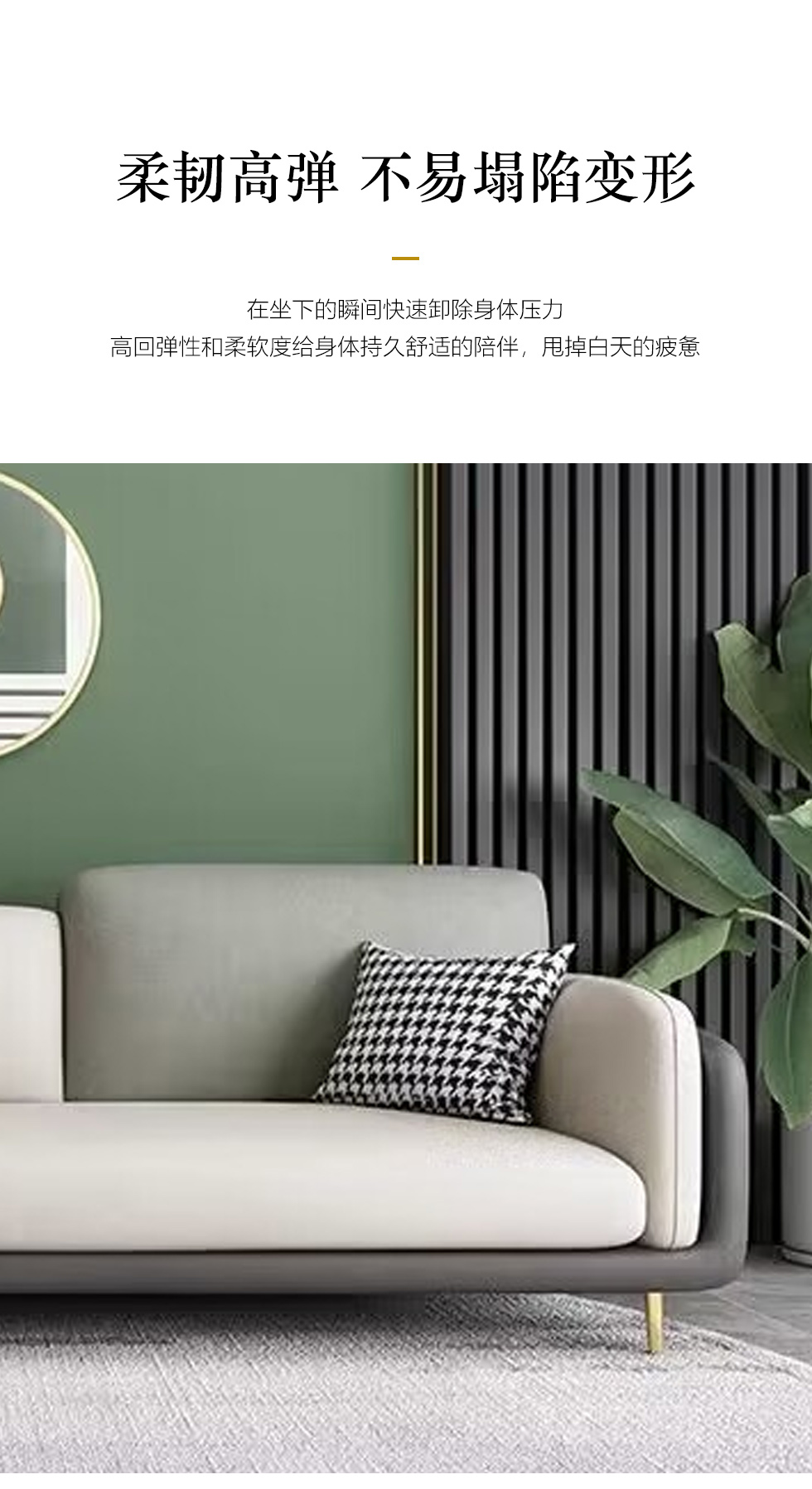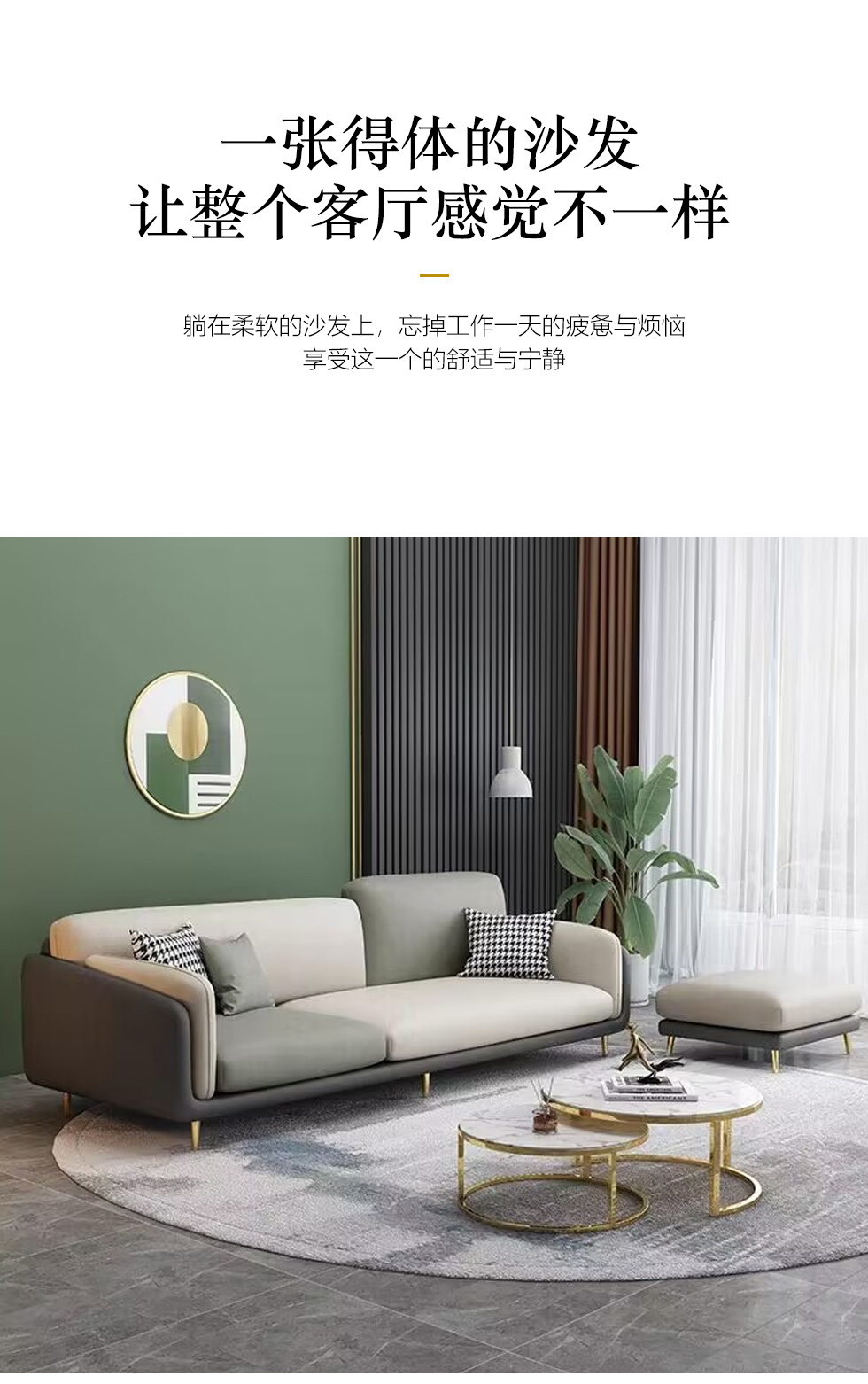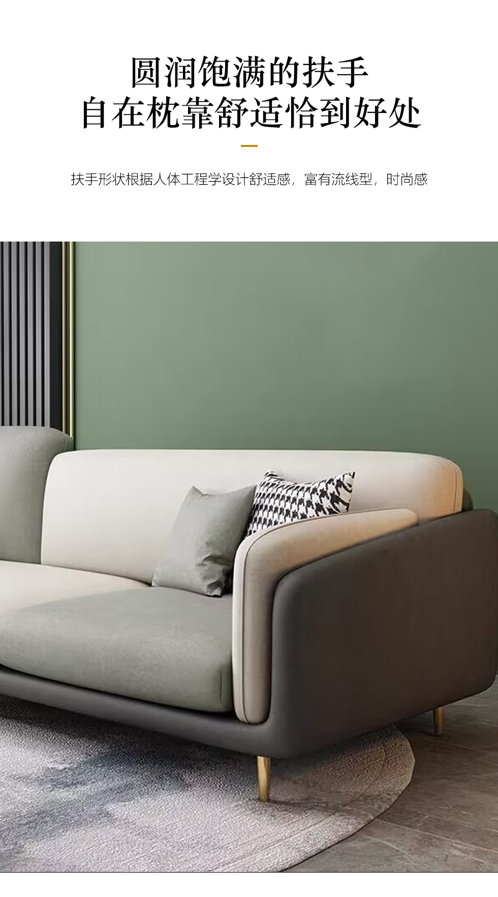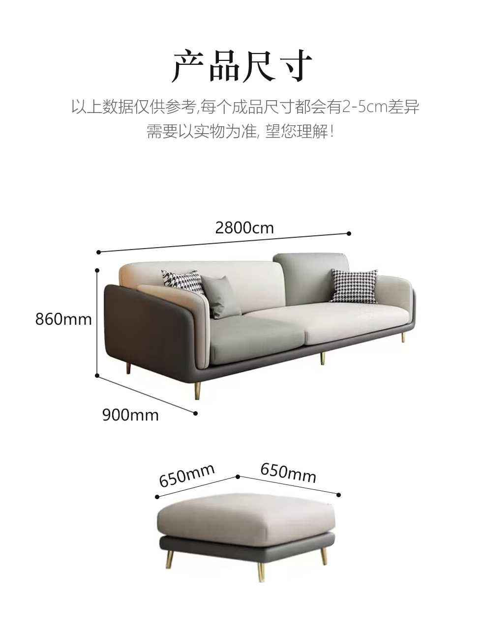 A系优选 现代简约 优质科技布料+抛光实木内架+合成板材框架+坐包填充高密度纯海绵+12公分五金脚 深灰色+米灰色 四位2.8米+脚踏