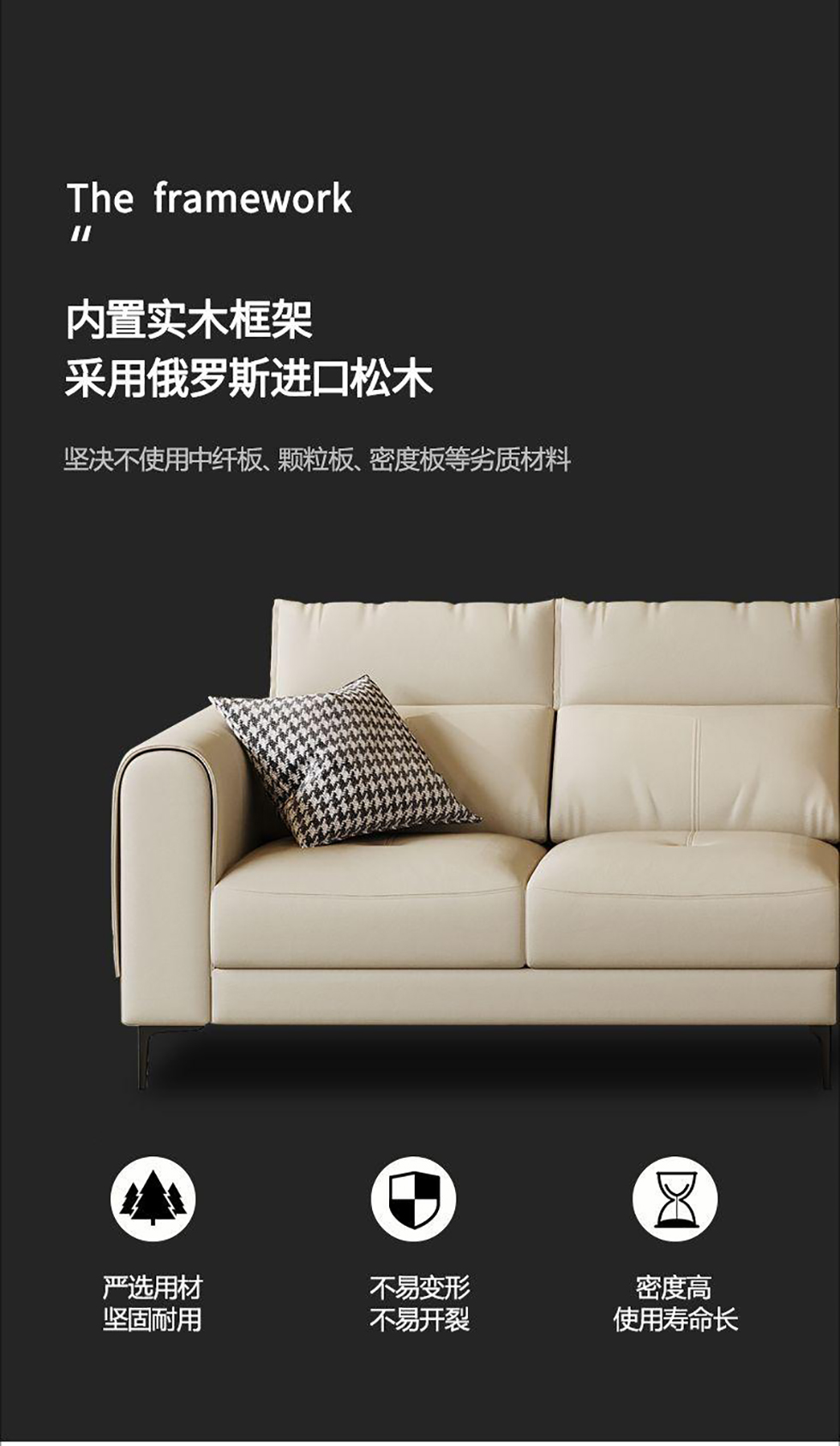 B系优选 现代简约 接触面中厚头层牛皮面料+进口俄罗斯松木框架+高回弹海绵+坐前真皮+仿真皮 四人位 3米沙发1件商品搭配总价: