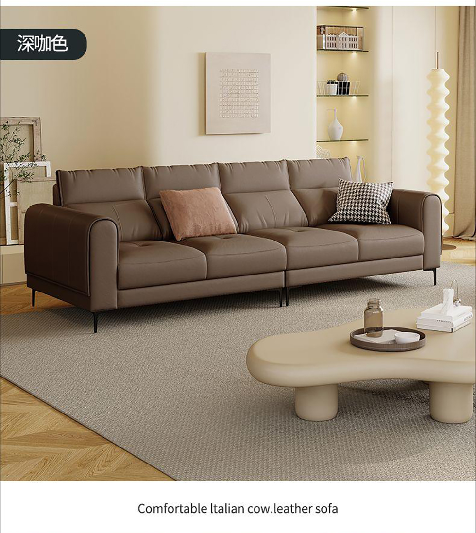 B系优选 现代简约 接触面头层黄牛皮+仿皮+E1级夹板+松木框架+无粉高密度海绵+靠包填充公仔棉 四人位 真皮2.8米沙发¥8155