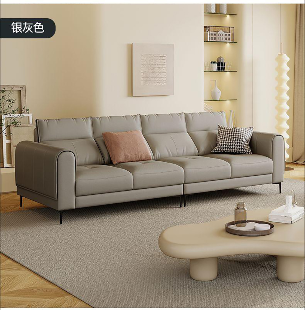 B系优选 现代简约 接触面头层黄牛皮+仿皮 E1级夹板+松木框架 无粉海绵 靠包赛羽绒+公仔棉填充 样色 直排3.2米四人位 皮艺沙发¥8155