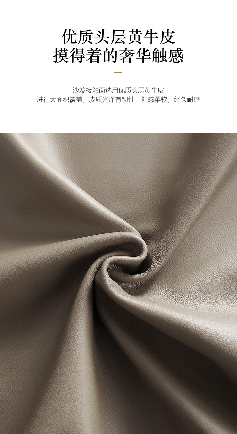 B系优选 现代简约 接触面中厚头层牛皮面料+进口俄罗斯松木框架+高回弹海绵+坐前真皮+仿真皮 四人位 3米沙发¥8155