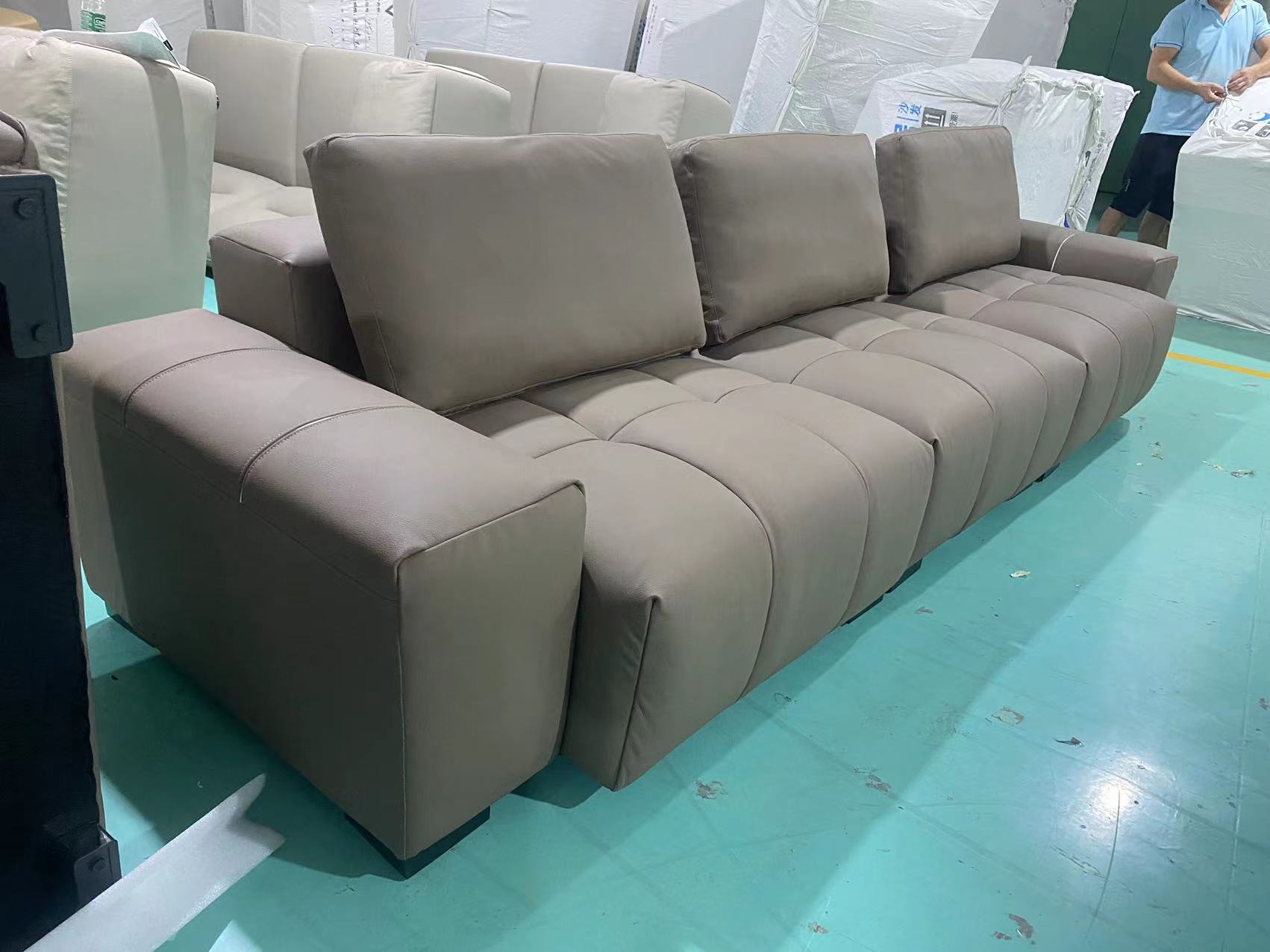 B系优选 现代简约 接触面真皮 全实木刨方木架+蛇形弹簧+静音拉扣 卡其色 2.8米直排 四人位 沙发¥8155