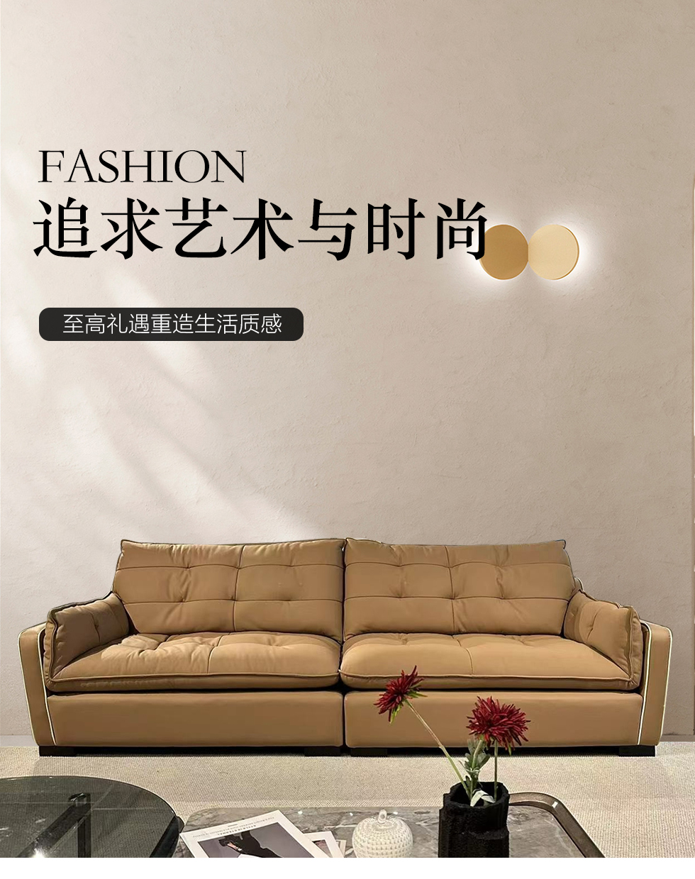 非凡工艺 现代简约 网红 中古风 接触面头层牛皮+框架落叶松木+多层实木夹板+金属脚 2.8米 大四人位 分体 沙发¥7852