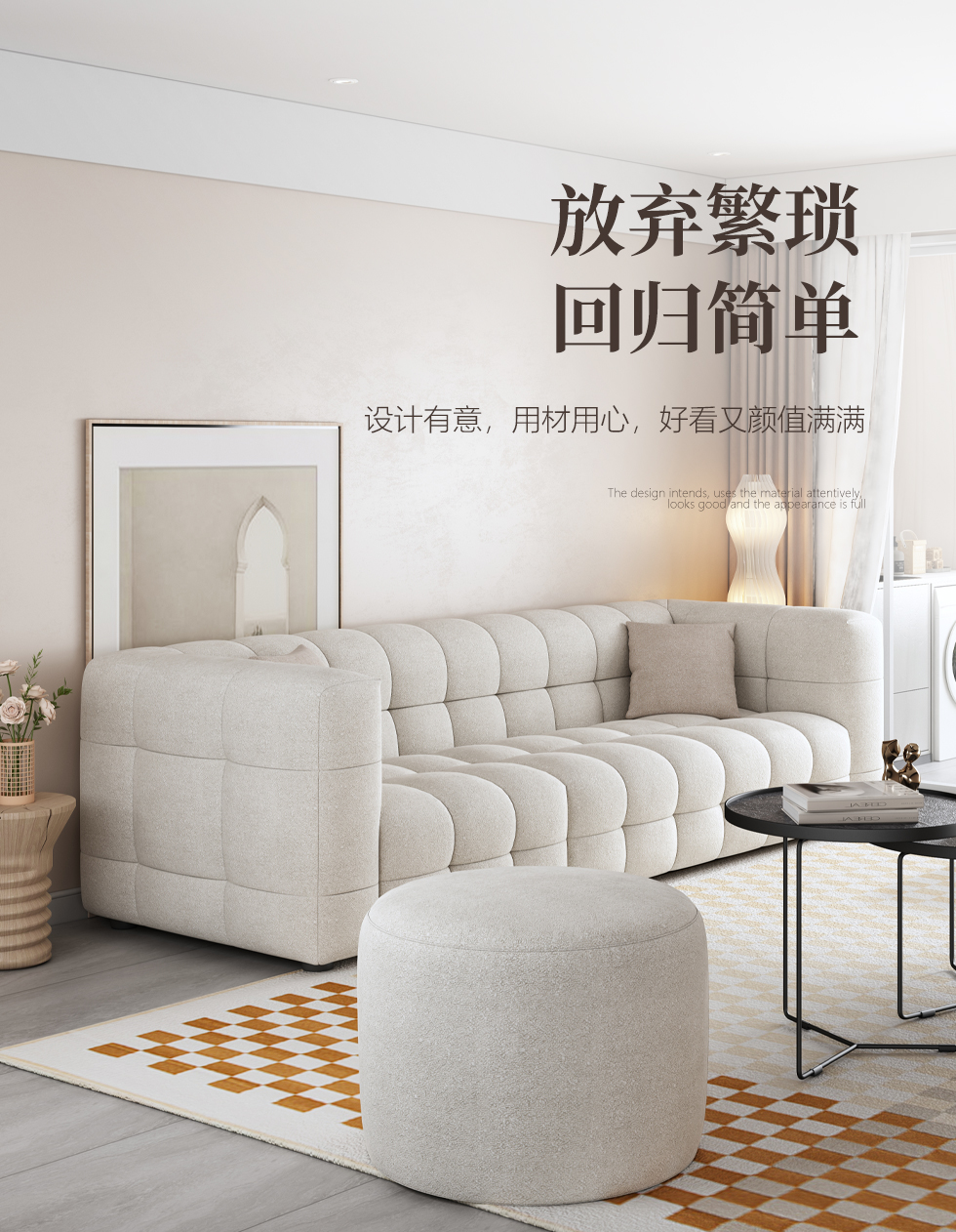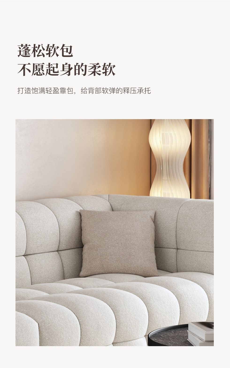 云端 奶油风 科技绒布料+抛光实木内架(桉木为主)坐包填充高密度纯海绵+5公分实木圆脚 米白 3.3米 布艺 网红模块 沙发(1+1+1+脚踏)