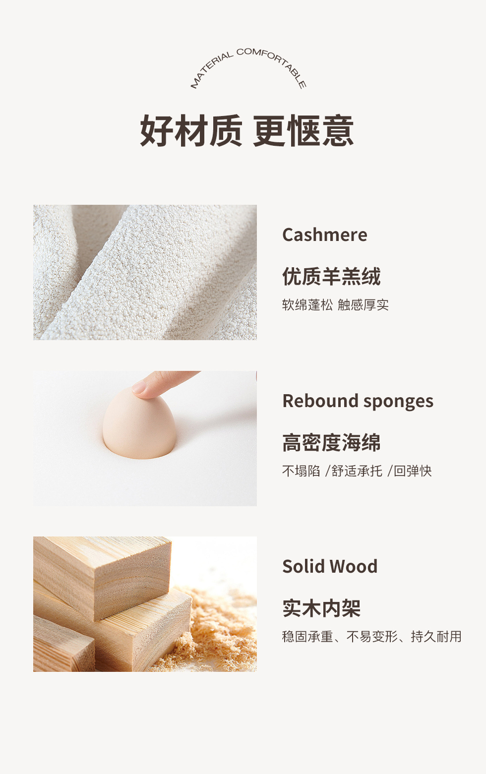 云端 奶油风 羊羔绒+海绵+公仔绵+实木框架+实木脚 图片色 四人位 3米沙发