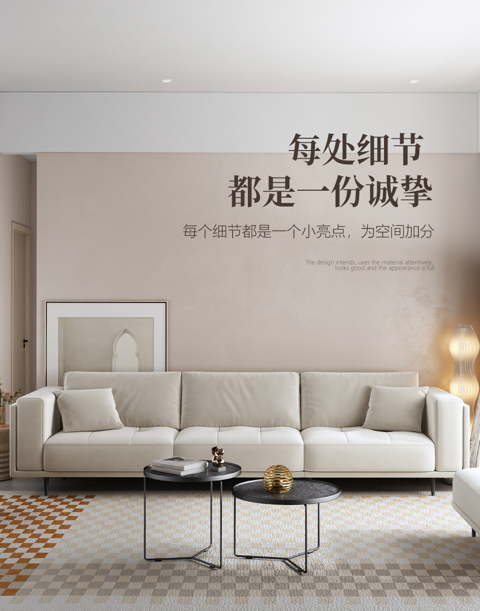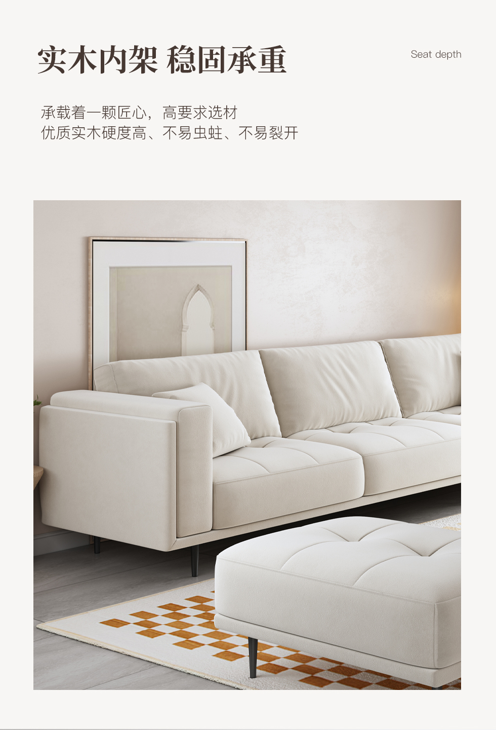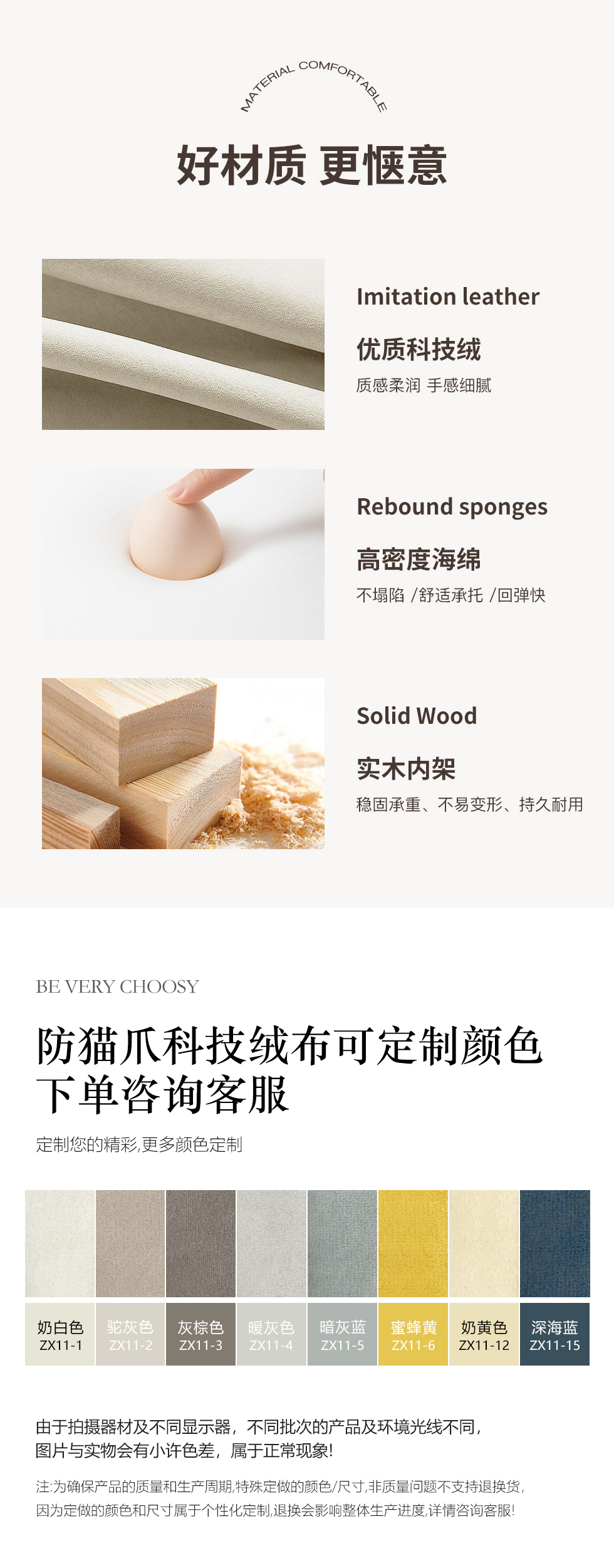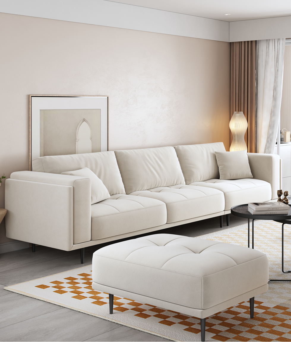 A系优选 现代简约 泰迪绒+高密度东亚海绵+实木框架 3.4米沙发